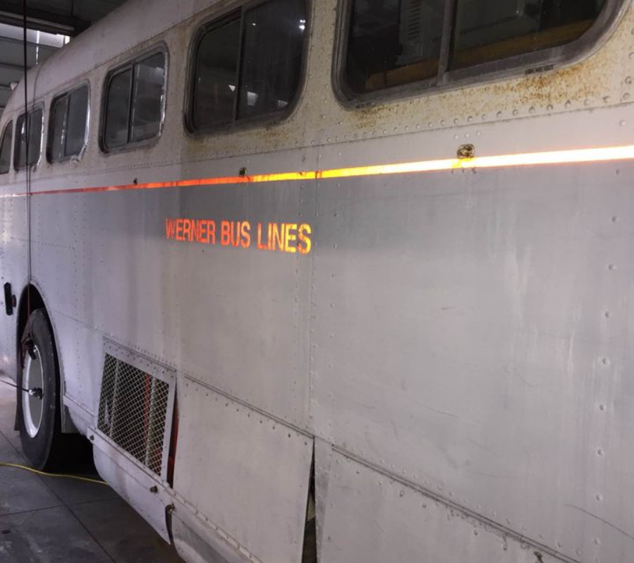 According to the Pacific Bus Museum, the GM PD-3302 is a rare coach bus. Built in 1945 by General Motors' Pontiac Motor Division in Pontiac, Michigan, this bus is serial number 90 of only 100 built. These buses, called Parlor buses, had steel bodies and featured diesel engines mounted in the rear. These typically seated 33 to 37 people and this particular example served as a workhorse for Werner Bus Lines out of Phoenixville, Pennsylvania.