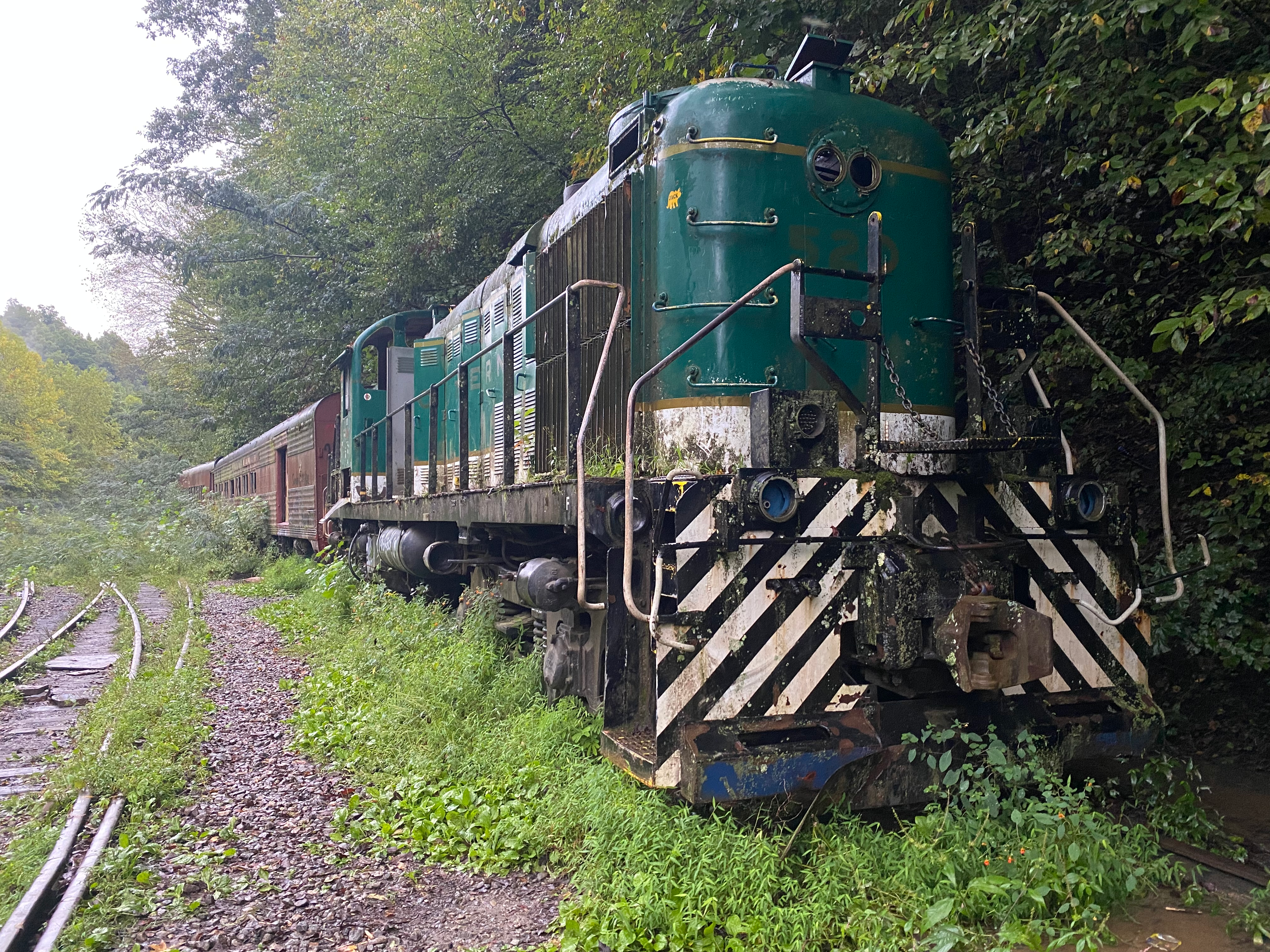 Located about an hour northwest of Knoxville and parked in a railroad siding is a weathered green 1951 Alco RS-3 locomotive. Coupled to it is an even older combine car (a train car that combines freight and passengers) and a commuter car. Under the plant growth and faded paint you can just barely make out the name of a railroad: New River.