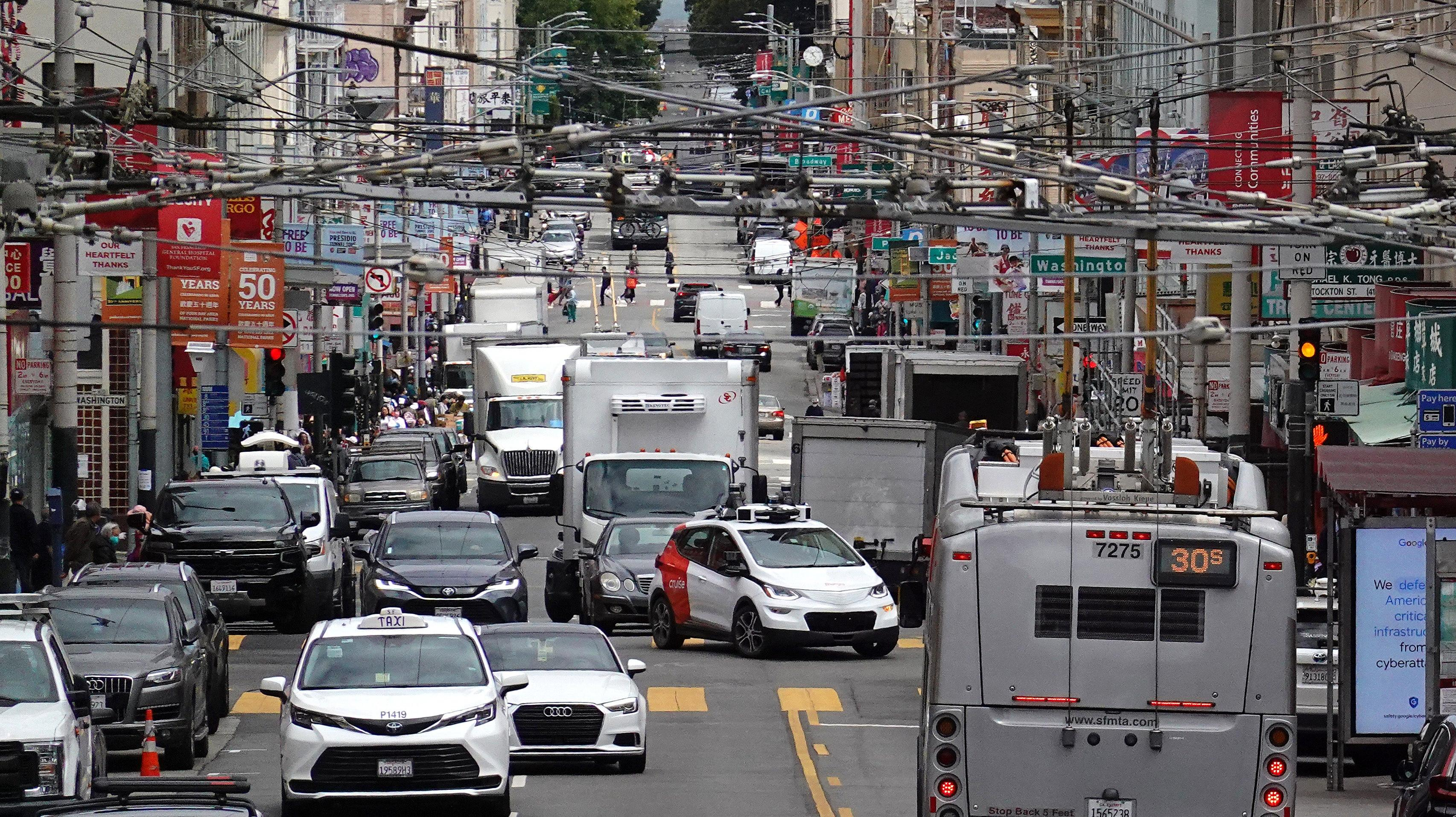 The snarl happened just after 11 p.m. on two narrow streets— Vallejo Street and Grant Avenue—where they cross with Columbus Avenue in San Francisco's North Beach neighborhood. Social media posts of the event show up to ten driverless taxis scattered haphazardly across traffic.