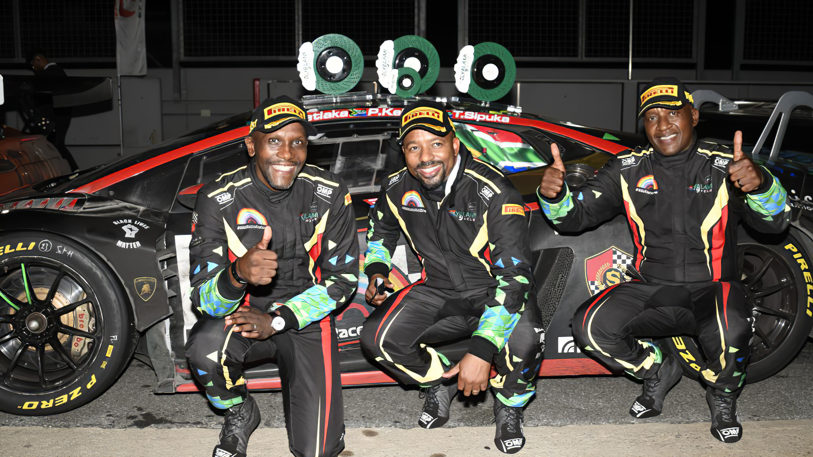 There was also a national GT3 class race for local South African entries within the already small field. The four entries in the class included the first-ever all-Black African team to enter the Kyalami 9 Hour, the #23 Stradale Into Africa Lamborghini Huracan GT3 Evo driven by Xolile Letlaka, Tschops Sipuka and Phillip Kekana. The #23 Lamborghini finished all nine hours. However, this class race only took place over the first hour of the 9-hour enduro. Once Silvio Scribante won the hour-long race-within-a-race, he pulled into pitlane and parked his Lamborghini Huracan GT3 Evo.