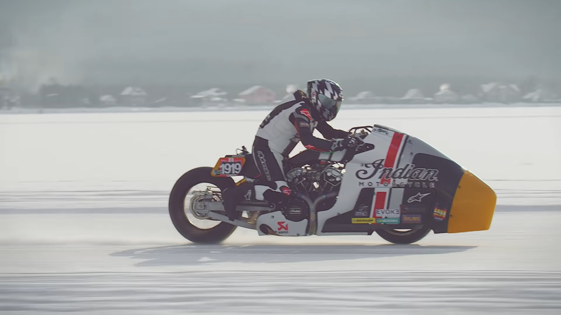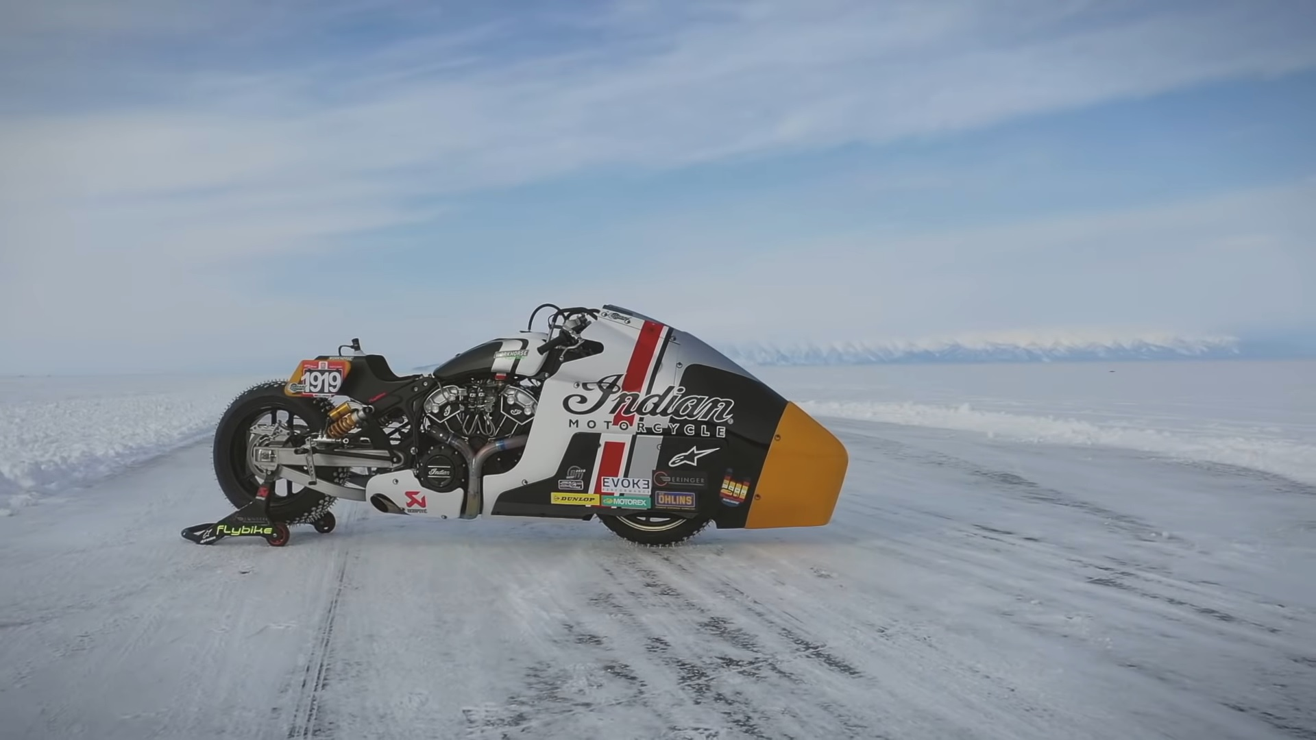 While the team did manage to get in a few runs on the 1/8th mile ice track that showed promise, all of the running at full throttle on the full mile saw the engine breaking up at RPM, and the rough ice causing the tire to contact the bodywork. While the team didn't get to run a speed they feel the bike was capable of producing, it did manage to hit 180 kilometers per hour, which is around 111 mph, and I'm not sure I'd want to do that on ice! I've maybe perhaps once gone that fast on a stock Indian Scout, and I really don't recommend it.