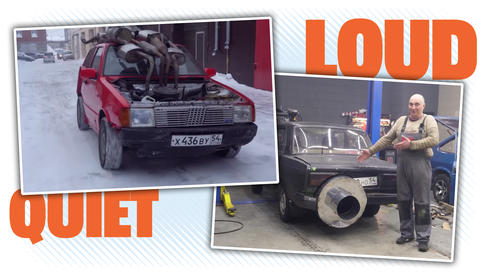 We've covered the delightfully Russian exploits of Garage 54 for quite a while, and I can't think of a time when their particular brand of destructive notgiveafuckery isn't appreciated. They've just put out two videos that dovetail quite nicely together, as experiments, as they're two opposite extremes: making the quietest possible exhaust and then the loudest possible exhaust.