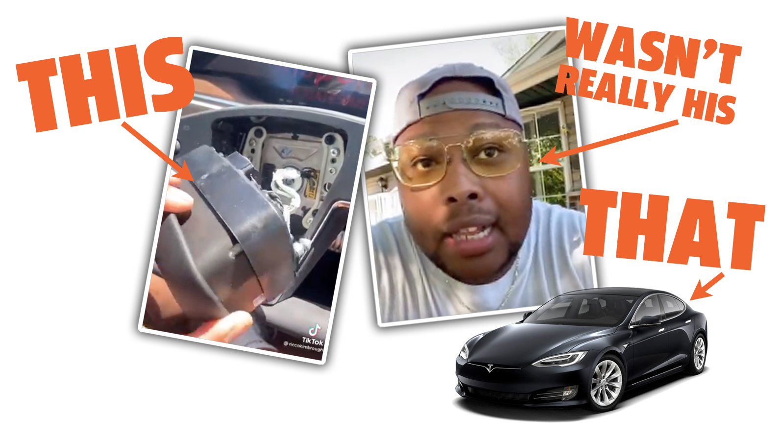 Despite what my recent colonic lab results suggest, I'm human. And, as a human, I make mistakes. Statistically, I suspect I make many more mistakes than an average human. One of these mistakes was taking a TikToker at their word regarding a Tesla they claimed to own. The TikToker in question is the one we wrote about last week, who claimed to be taking delivery of his new Tesla when the airbag came off in his hand. According to another video, it appears he did not own the car he sat in, and the cops told him to stay clear of the Tesla Store.