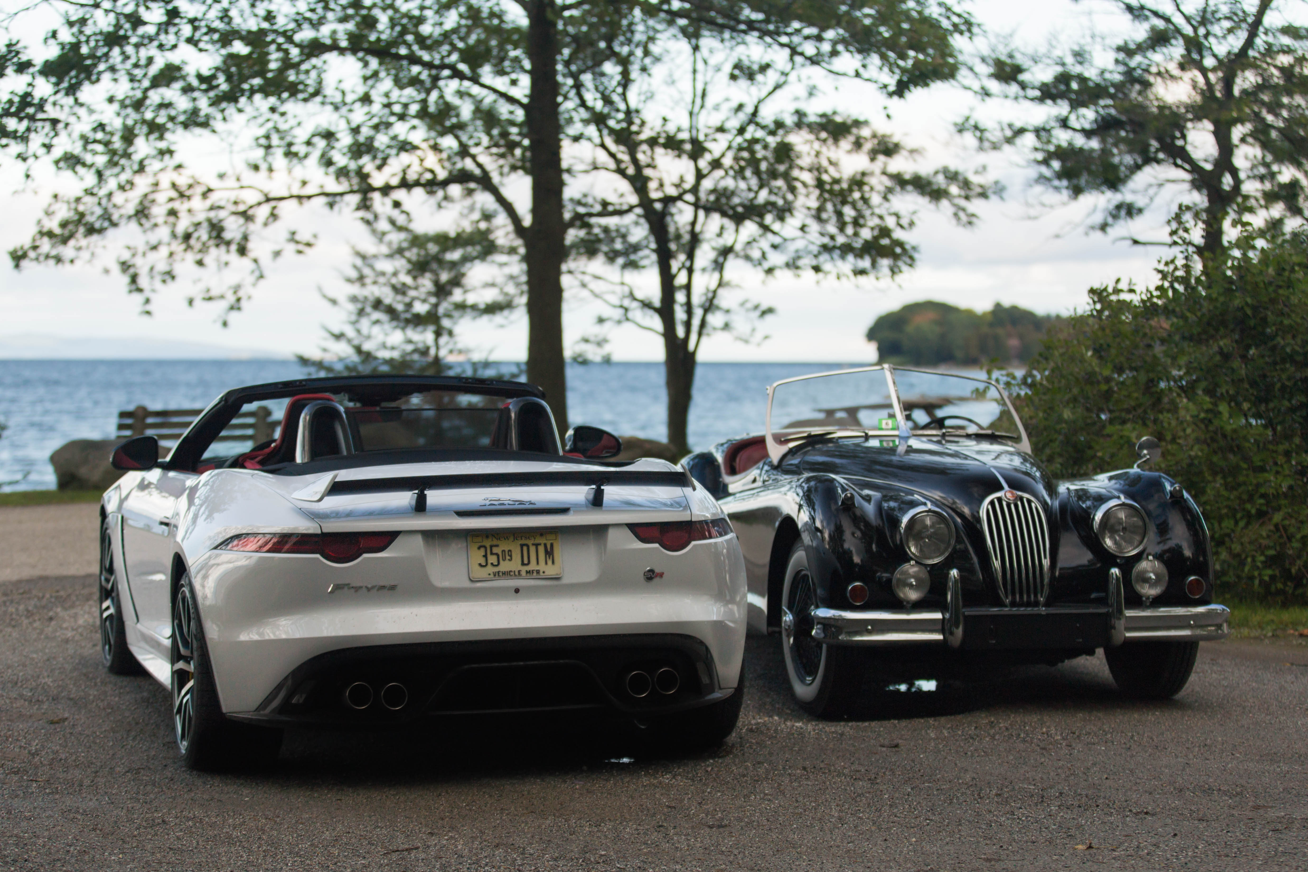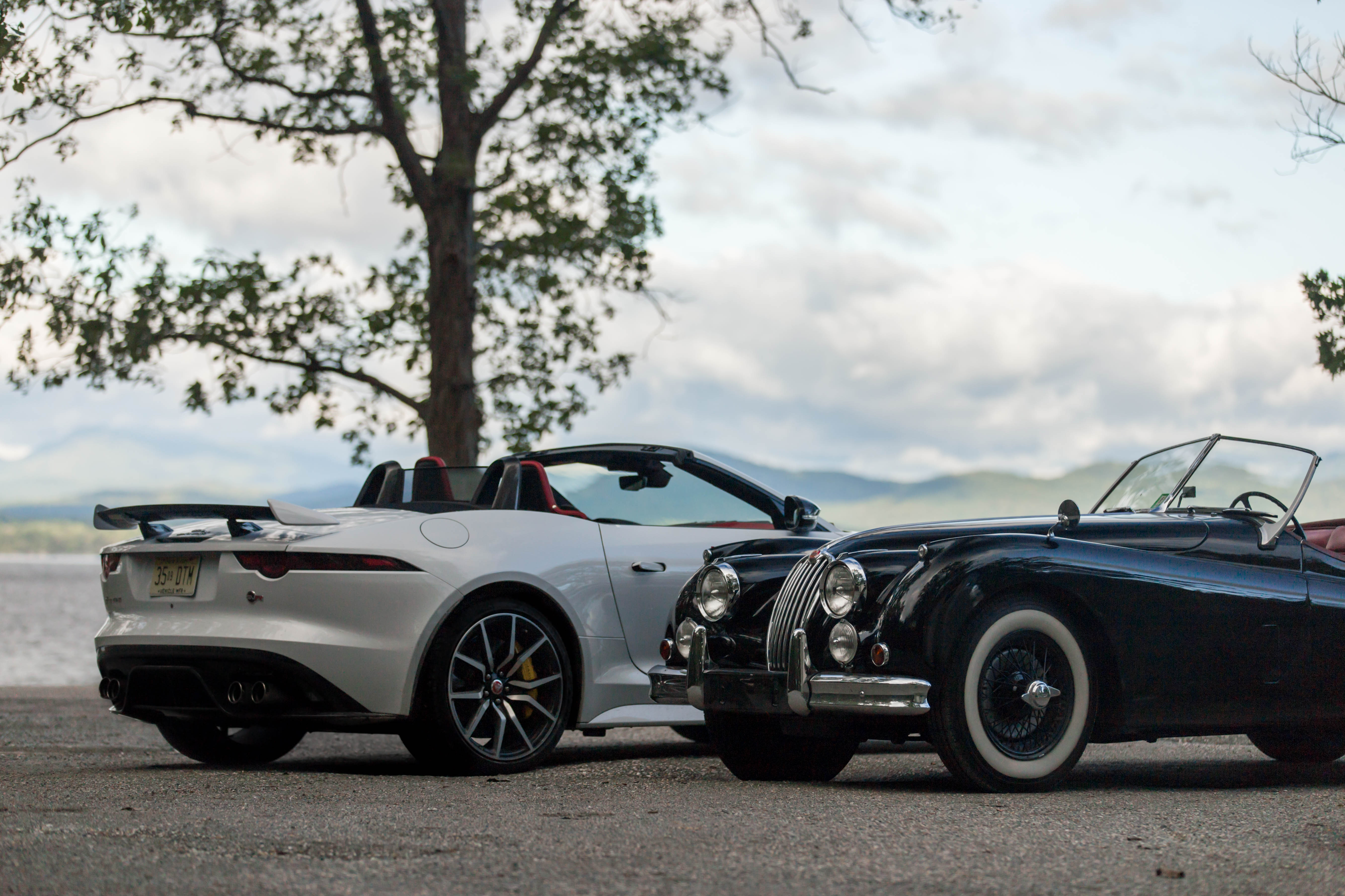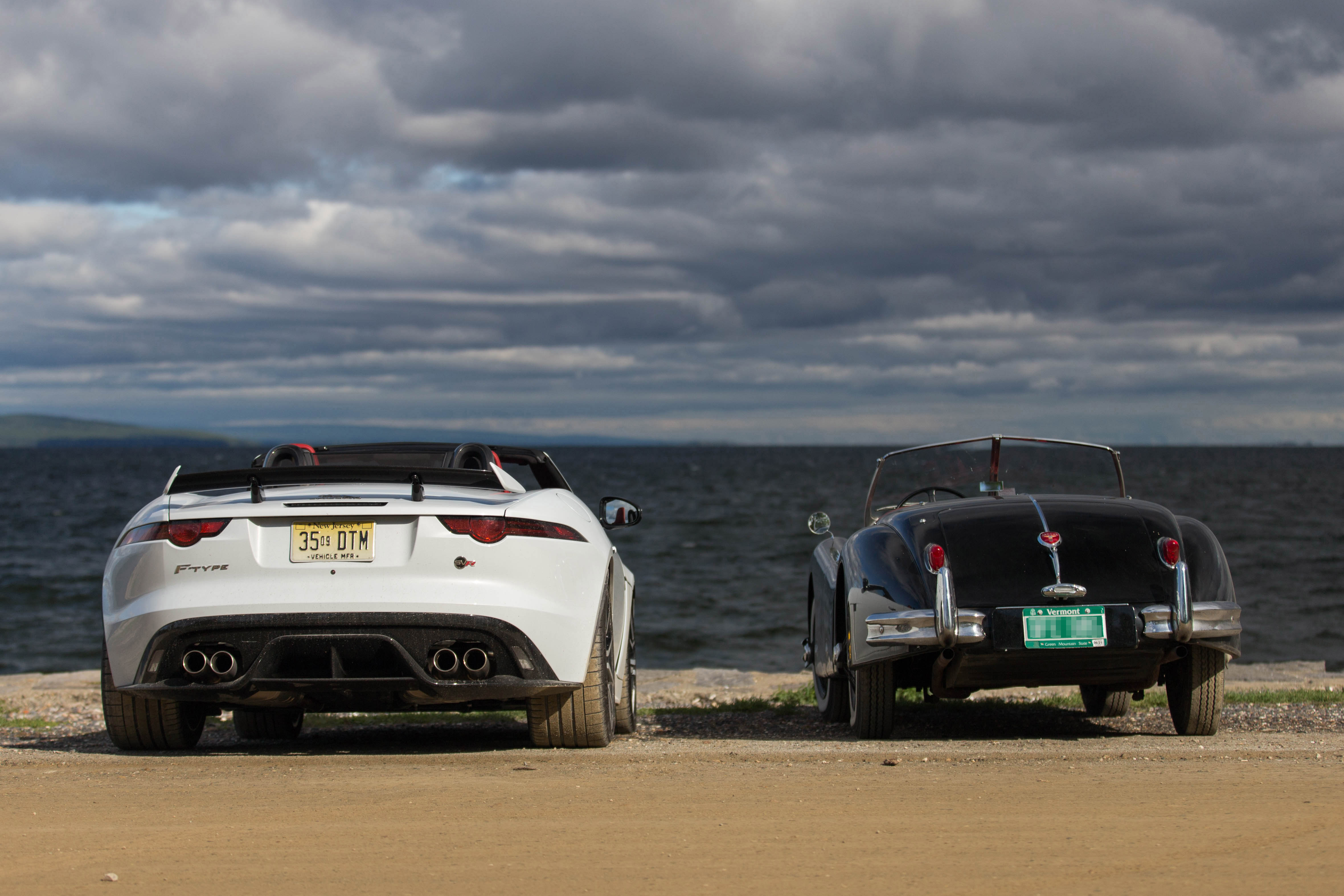 Aesthetically, the two could not be further apart. While the XK140 has very classically flowing lines and exaggerated fender arches, the F-Type definitely has a bit of Nissan 350Z-esque flavor to its profile. Swoopy lines are absent here, and whole thing just looks meaner. Mean is the signature face of the 21st century.