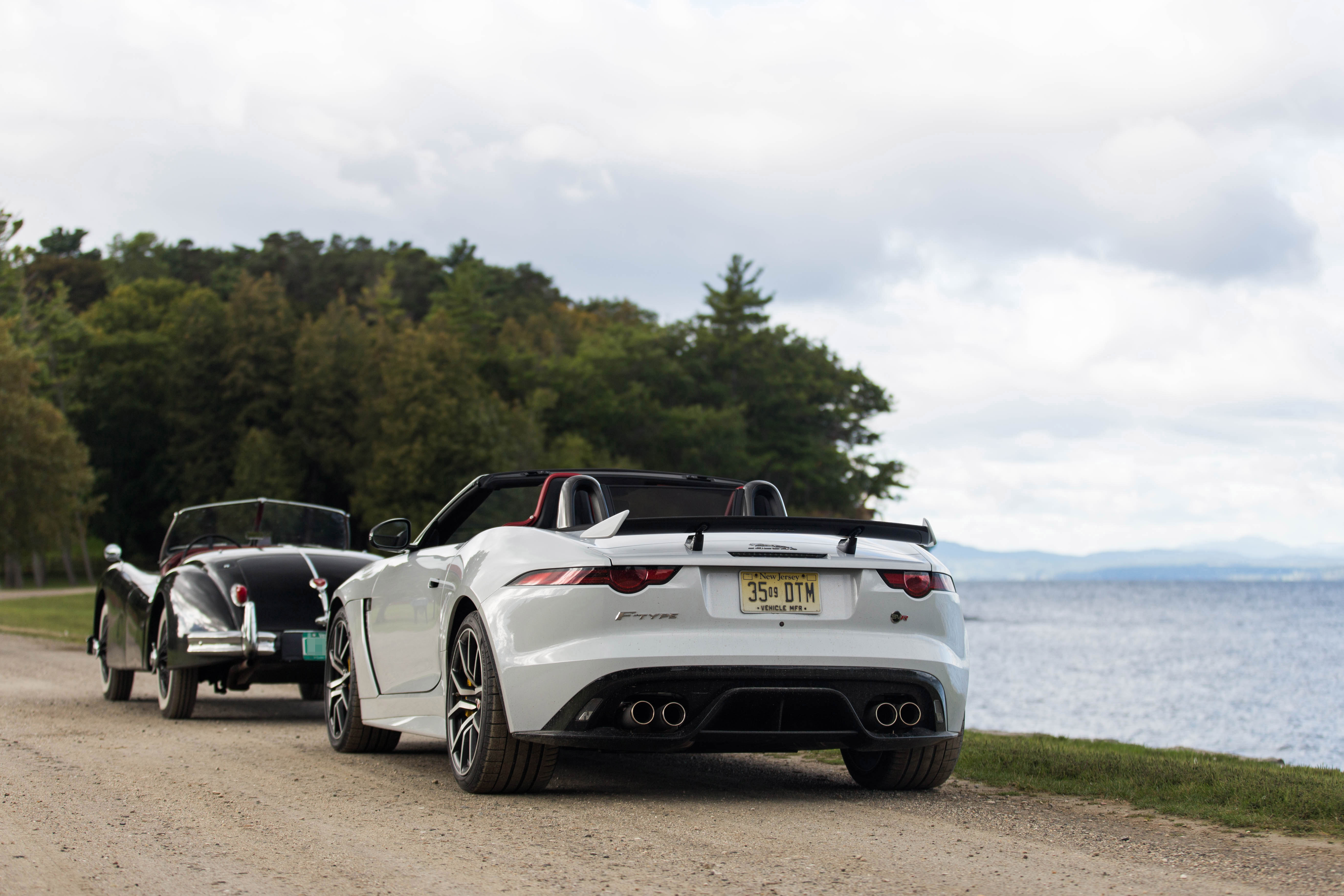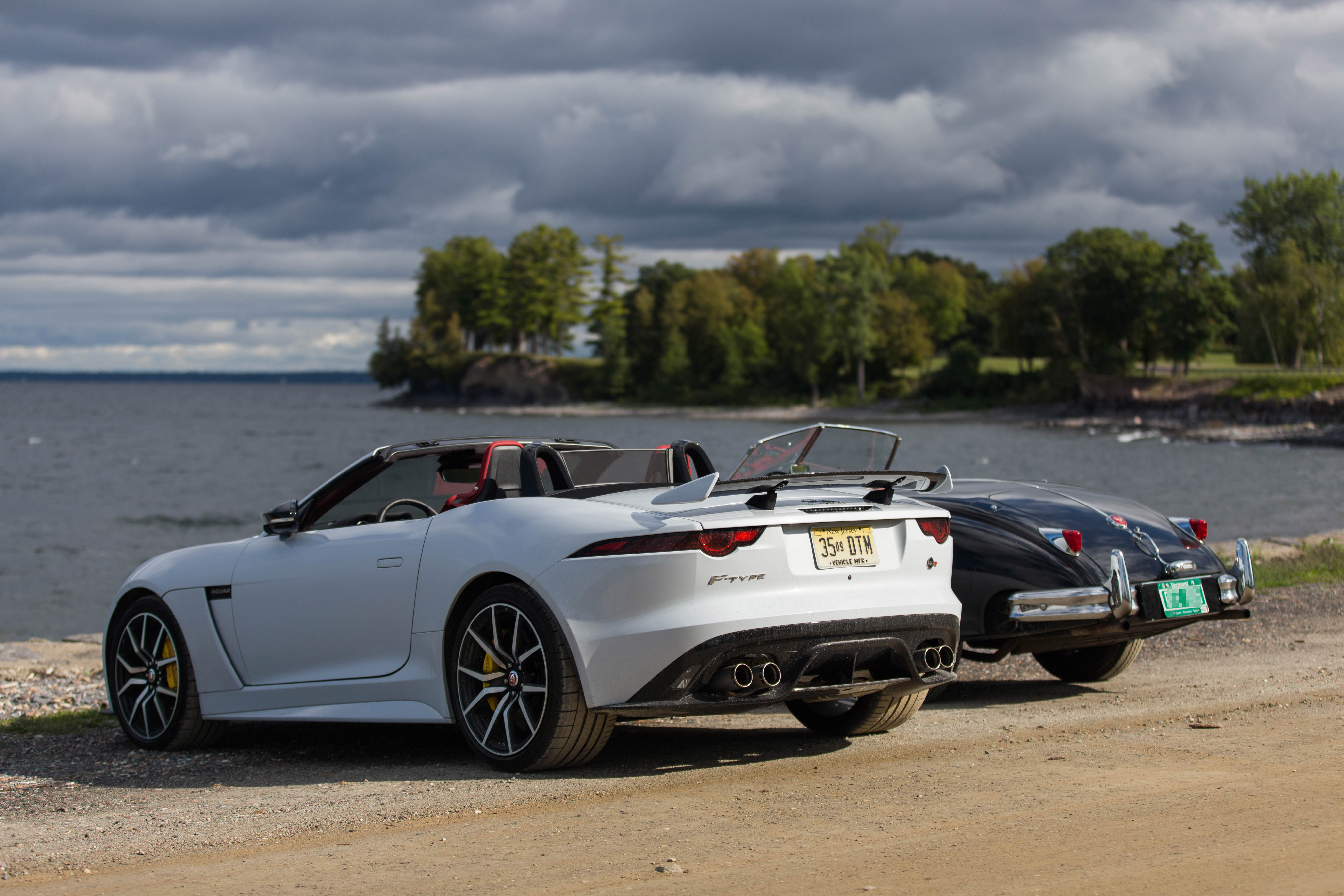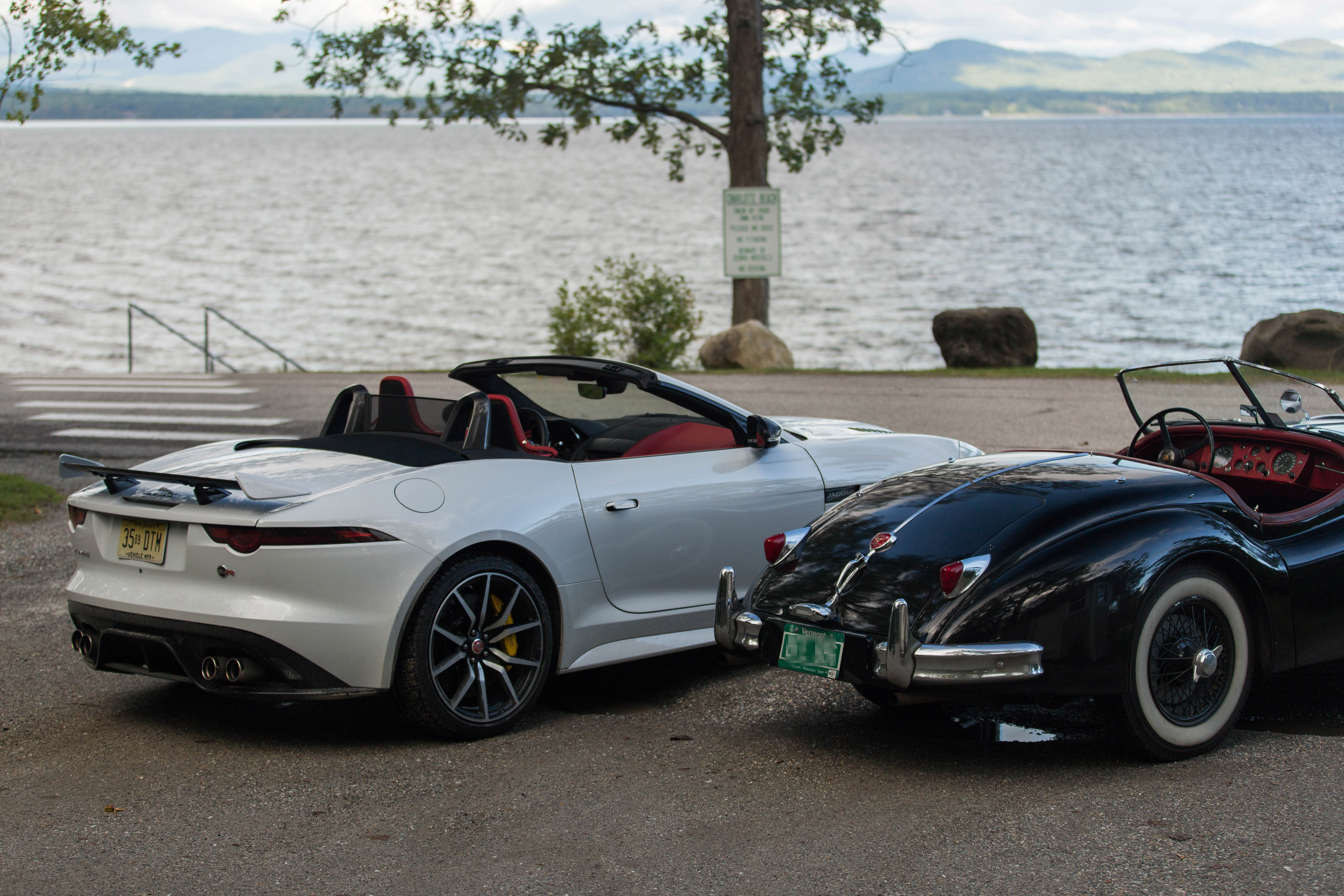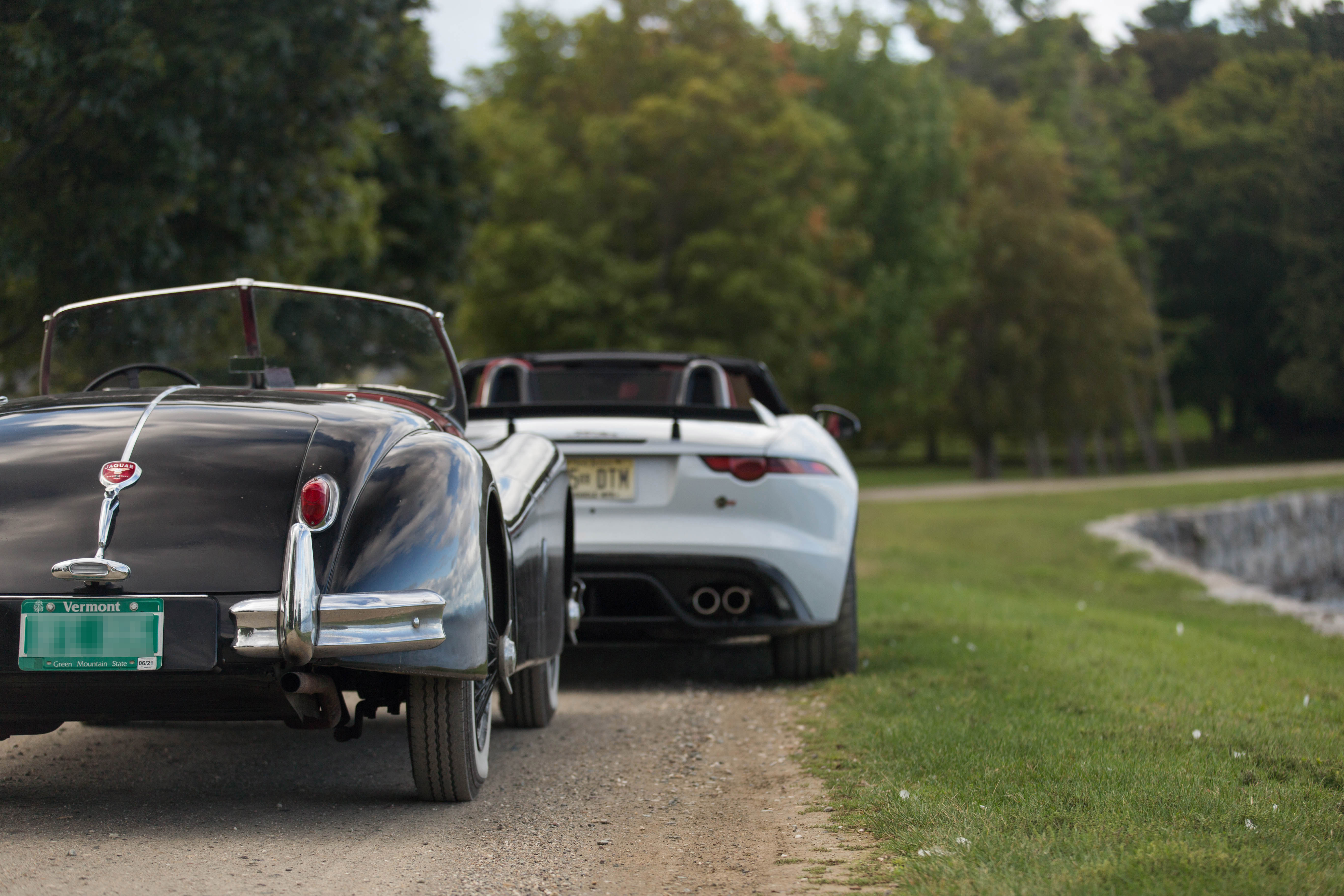 Modern safety standards have decreed the F-Type be far chunkier and thicker than the XK140. In the event of a crash, I don't need to tell you which car I'd prefer to be riding in, but I will say the low window line of the XK140 is perfect for resting your arm on while you drive. There's something very glamorous—and very lost—to that simple act.
