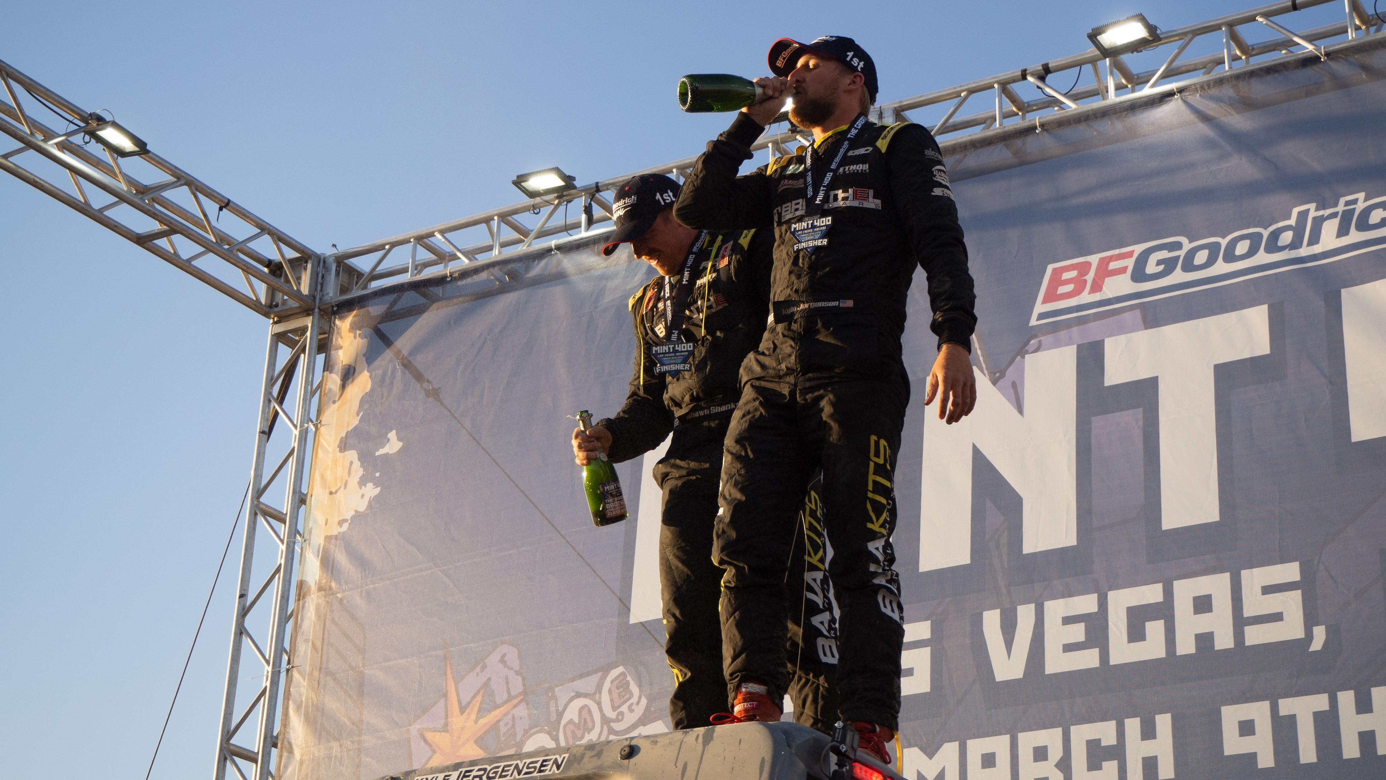 So, I asked off-road expert and racer Charlene Bower how competitors at the race, ahem, relieve themselves. How do Mint 400 contenders pee while running the length of the course, which covered four 95.7 mile laps in 2022? The answer, according to Charlene, is condoms and diapers. Or at least, something similar.