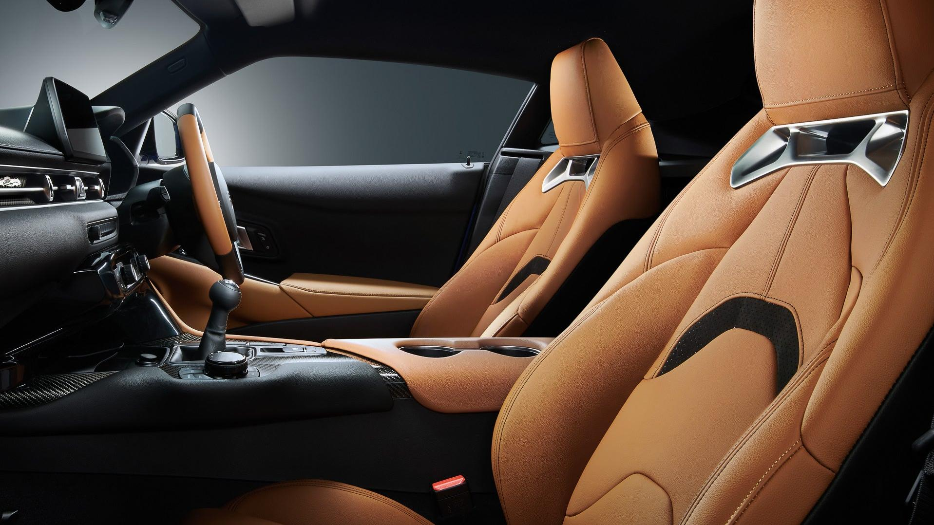 The Supra's "iMT" system uses a computer that matches engine speed to clutch and shift input, and automatically blips the throttle when a driver changes gears. All top-trim GR Supras come with an active rear differential, adaptive suspension, and upgraded stability control.