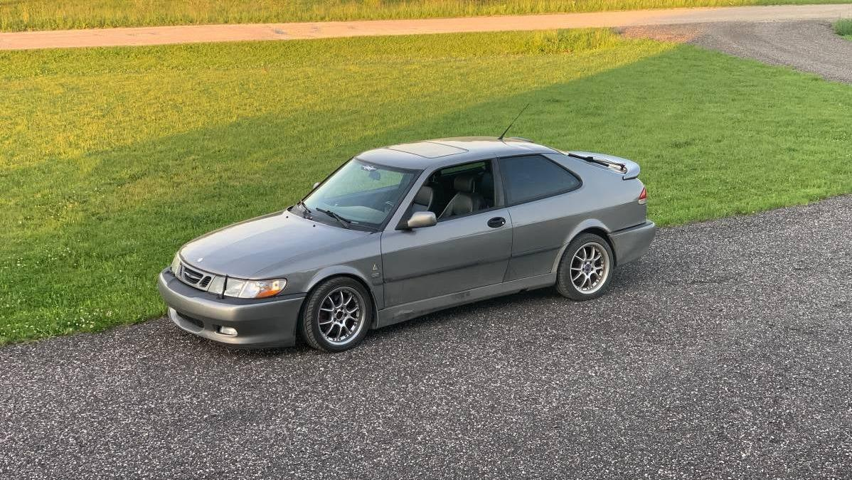 I'm calling this 9-3 the Viggen of Theseus. It's been smashed in by a tree, it's rusting away, it somehow includes five bent wheels out of a total of eight. The car has over a quarter of a million miles on it. It's seen some shit.