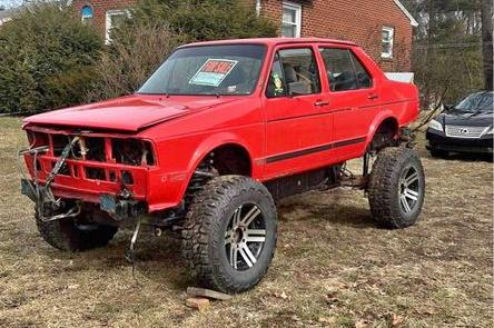 I say "sort of" because this is, in fact, a Jetta GLI body. It's just sitting atop a Toyota Tundra frame and running gear, with the Tundra's firewall beneath the sedan body. Which of those cars' VINs do you use to register this one? Who knows! Theseus, probably.
