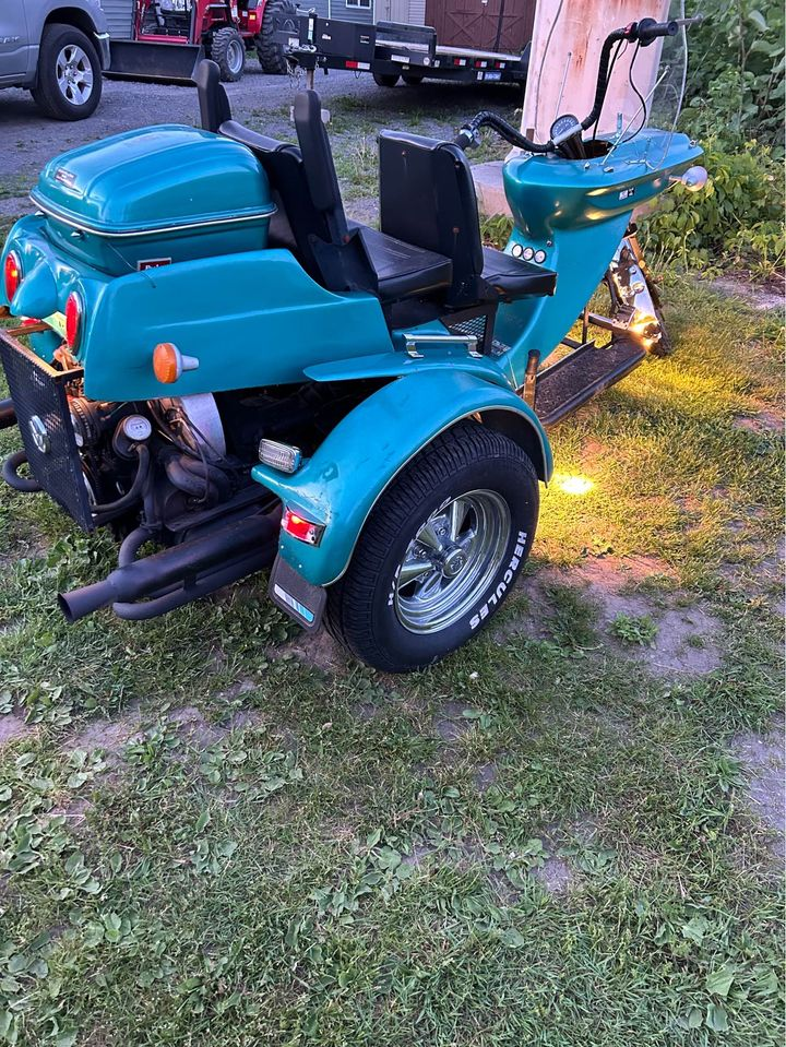 Here are some facts about this Volkswagen-rear, Yamaha-front trike: It "has a VW body kit," the engine is 1600 CCs, the transmission has three speeds plus reverse, the tires are new, and it doesn't have a throttle cable. These are the facts of the matter.