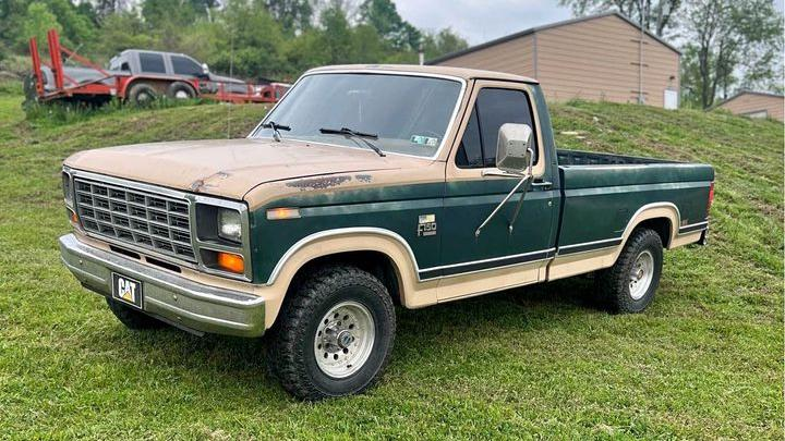 Old trucks, too, look better when they're worse. I have no adequate explanation for the paint situation on this F-150, other than to say that some real decisions were made. The truck appears to have originally been tan, then rattlecanned over in green, but why not follow the body lines? Why color match the inside of the bed but not the outside of the tailgate?