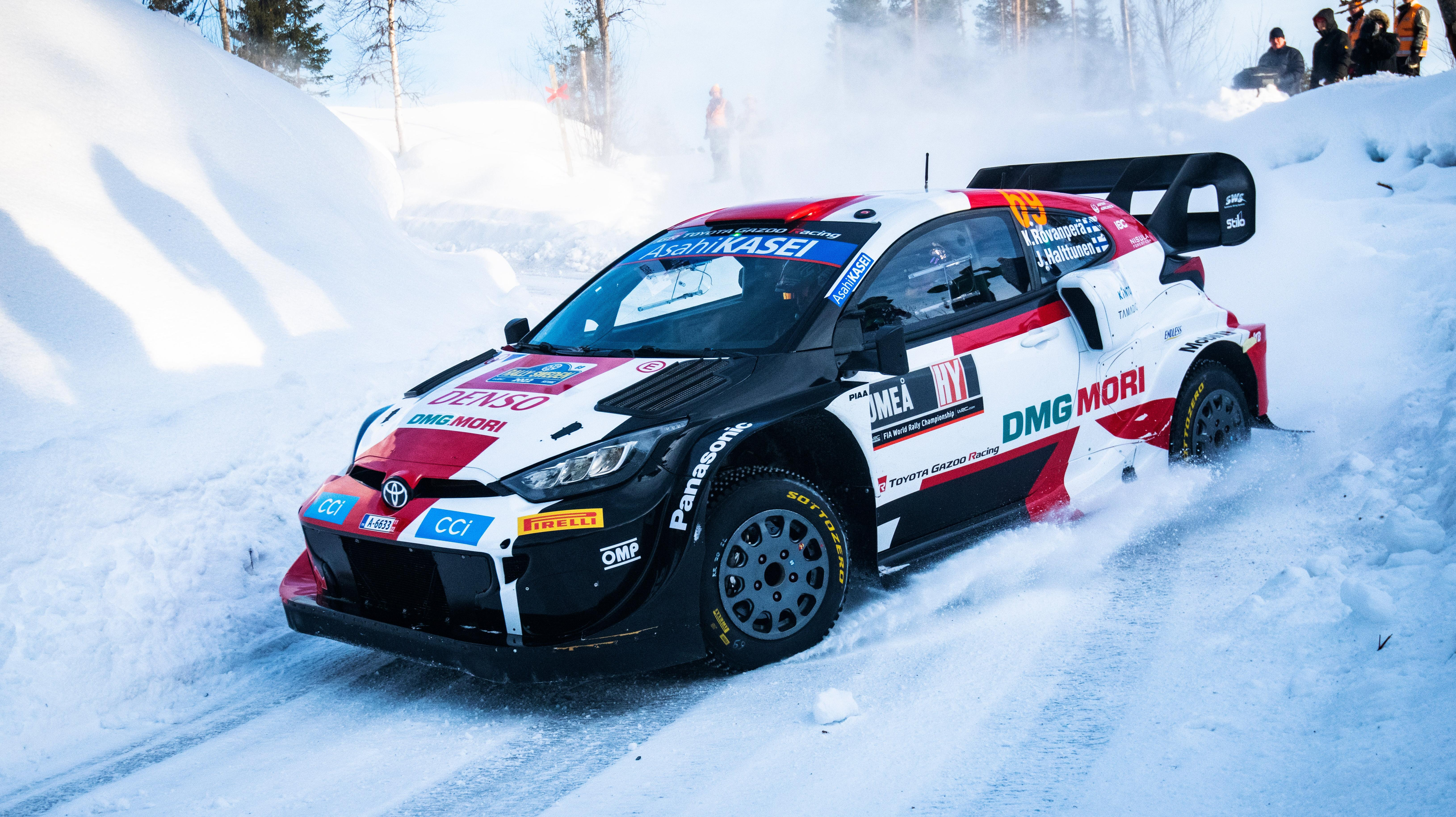His Toyota teammate and nearest rival Elfyn Evans made a huge error on Saturday night's final stage. At the final corner before the stage's flying finish, Evans misjudged the corner and crashed over the snowbanks that line the route. He was unable to reverse back onto the stage so Evans continued on a parallel road and rejoined the stage route before stop control. He was given a ten-second penalty by the stewards. Evans started Sunday still second but was forced to retire after crashing on the day's opening stage.