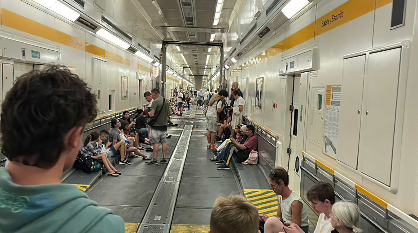 "The Shuttle was brought to a controlled stop and inspected. As a precautionary measure, for their safety and comfort, we transferred the passengers on-board to another shuttle, via the service tunnel [which is there for exactly that purpose]. We brought them to the passenger terminal building, where food and drinks were available."