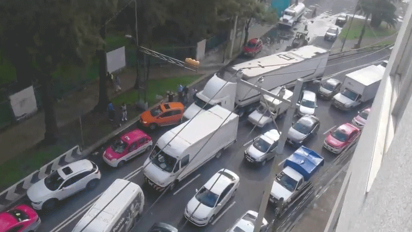 Despite the utter chaos from the multiple collisions and the assault, there were no fatal injuries. It was nonetheless a bad scene as the truck forced its way through traffic, its cab bucking and straining against cars and pinning down one taxi driver between the trailer and yet another car. You can see the utter chaos up close in this tweet from Mexican journalist, Joaquín López-Dóriga.