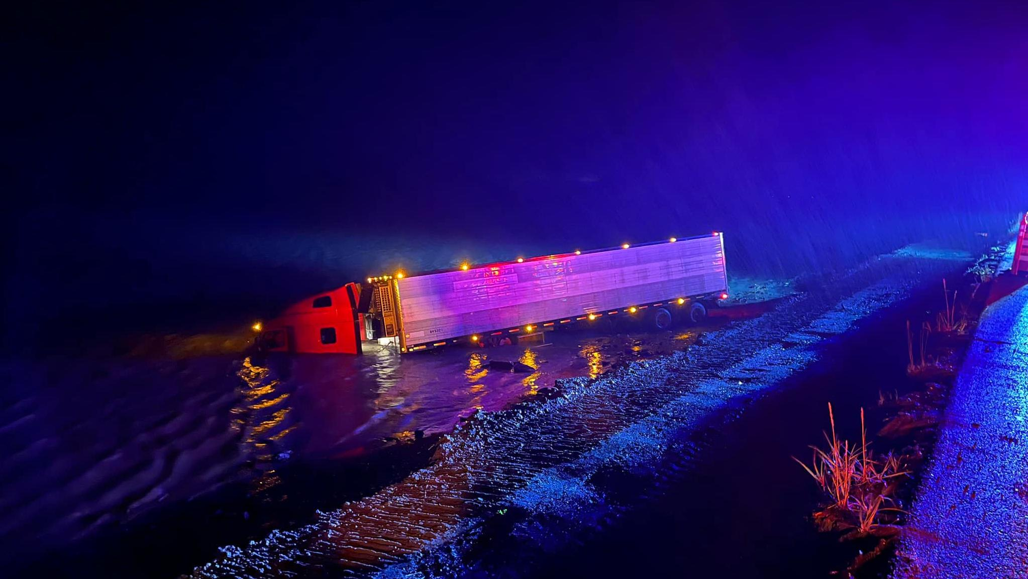 Girdwood Fire and Rescue crews arriving on scene found the driver still in the cab and, using a rescue throwbag, pulled him from the truck and to shore, according to an update Wednesday. The Girdwood crew described poor driving visibility in the area, with wind and horizontal rain.