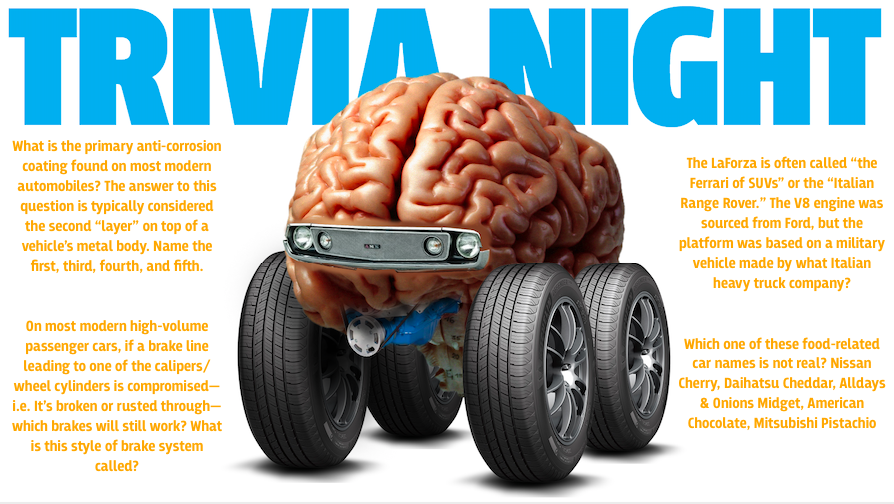 What a great trivia night last Friday. We had a gentleman Zoom-ing in from Brazil, last week's MVP from Indonesia made an appearance once again, we had guest-host Andrew Collins asking tough questions about SUVs, and we even had an entire team made up of Nissan engineers (for whom Jason dedicated an entire "Stump the Nissan Team" round).