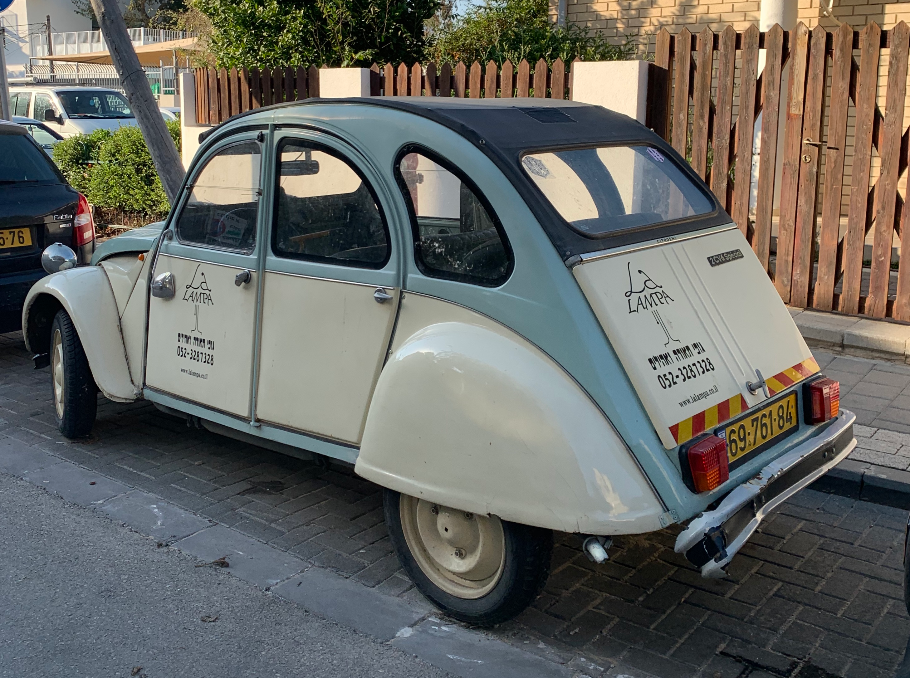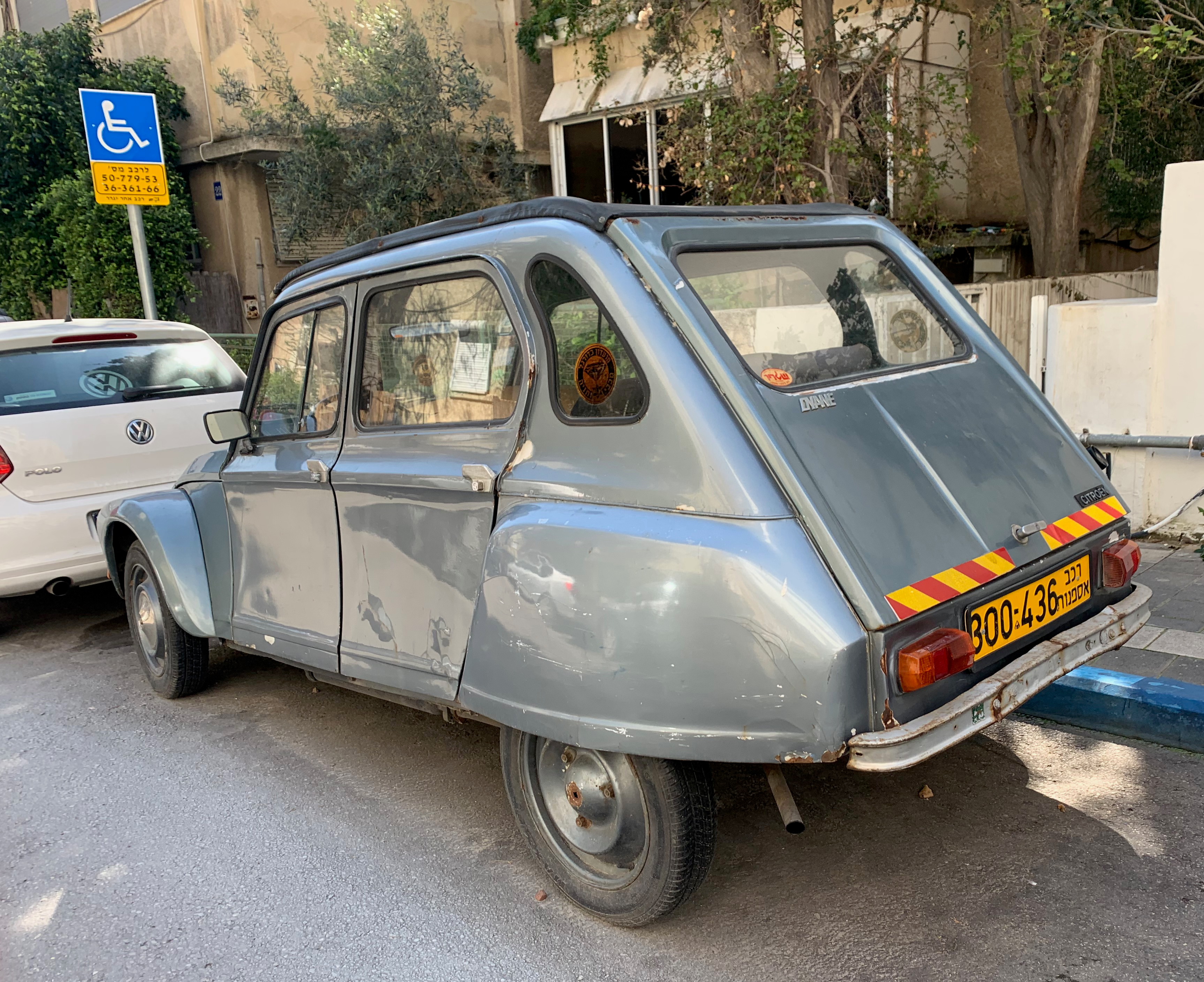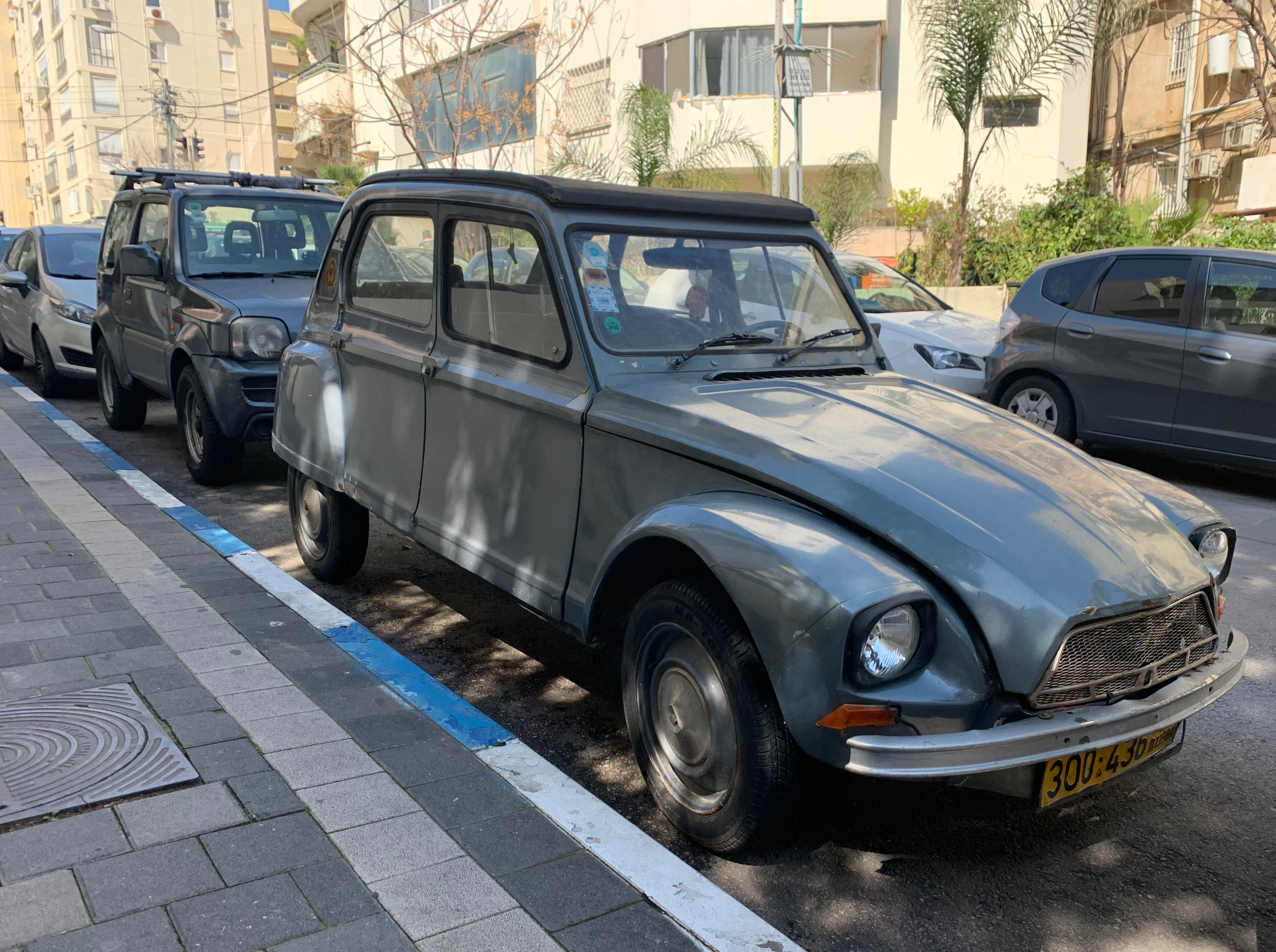 Here we've got what looks like a rather late Citroën 2Cv Special and a Citroën Dyane, the 2CV's hatch-equipped complement and successor. And while they both date from a little bit after the end of Israel and Frances' Mediterranean honeymoon, they certainly reflect a little bit of the Francophilia that has long loomed over Israeli culture.