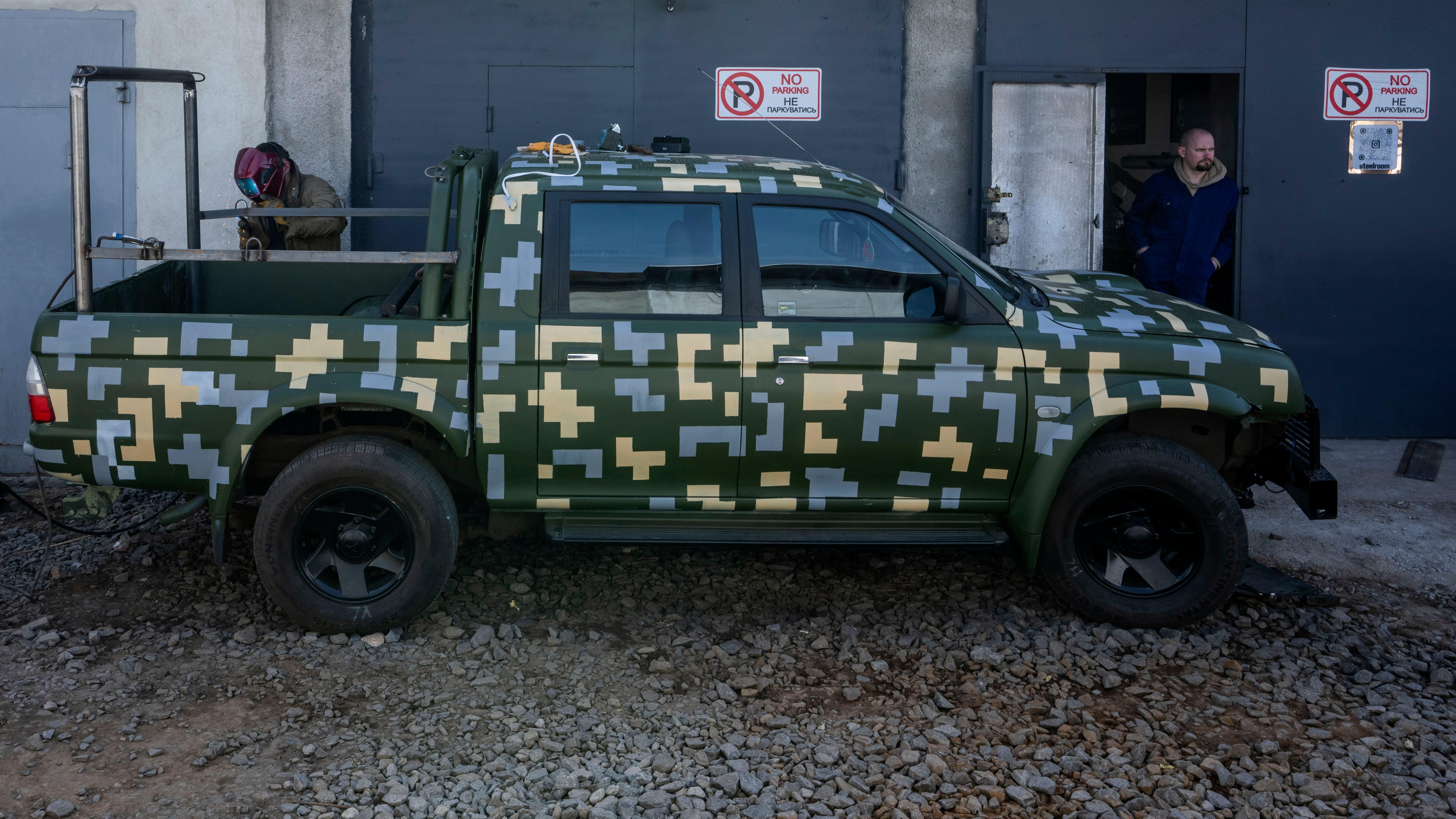 When it comes to the war effort in Ukraine, it's all hands on deck. That includes passenger vehicles. A welder's shop in Lviv is working overtime to outfit donated vehicles with steel plates, supports for machine guns, camouflage and everything else needed to turn a workhorse vehicle into a warhorse.