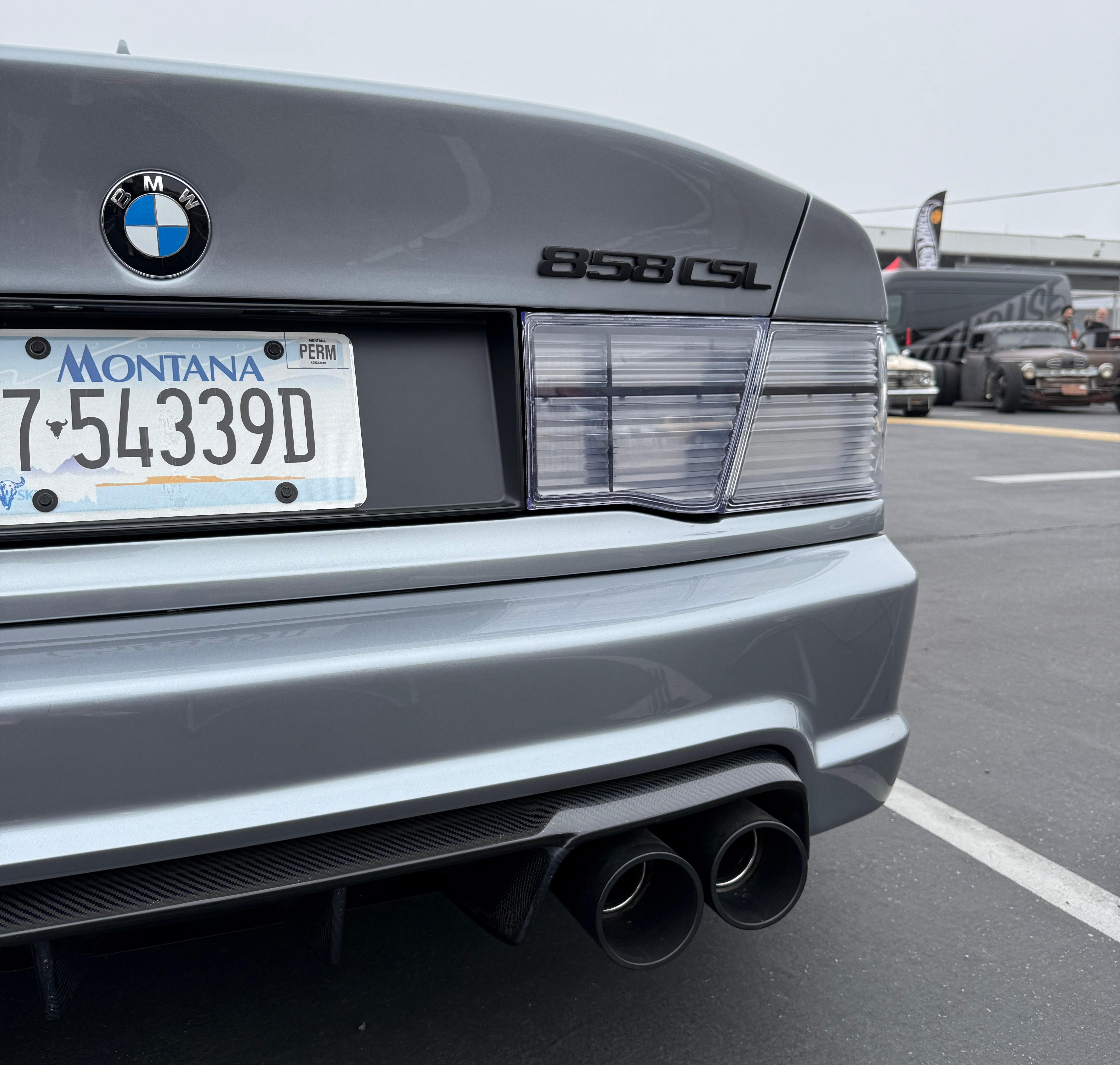 This E31 was built by Southern California–based Reyn Speed Shop, and somehow I totally missed its debut at Monterey Car Week this year. Called the 858 CSL, it uses the naturally aspirated 5.0-liter V10 from an E60 M5 bored out to 5.8 liters by Steve Dinan's company Carbahn. Rey Rivera of Reyn Speed Shop told Top Gear it makes somewhere around 630 horsepower and 489 pound-feet of torque, quite a bit more than the stock motor and way more than the 8 Series' stock V12, and the 858 CSL was also fitted with the six-speed manual from the M5. Gazing into the engine bay, you'd never guess that it wasn't original. The car even has stability control and ABS, and it retains all of the E60's diagnostics and computers, so it should be easy to maintain too.