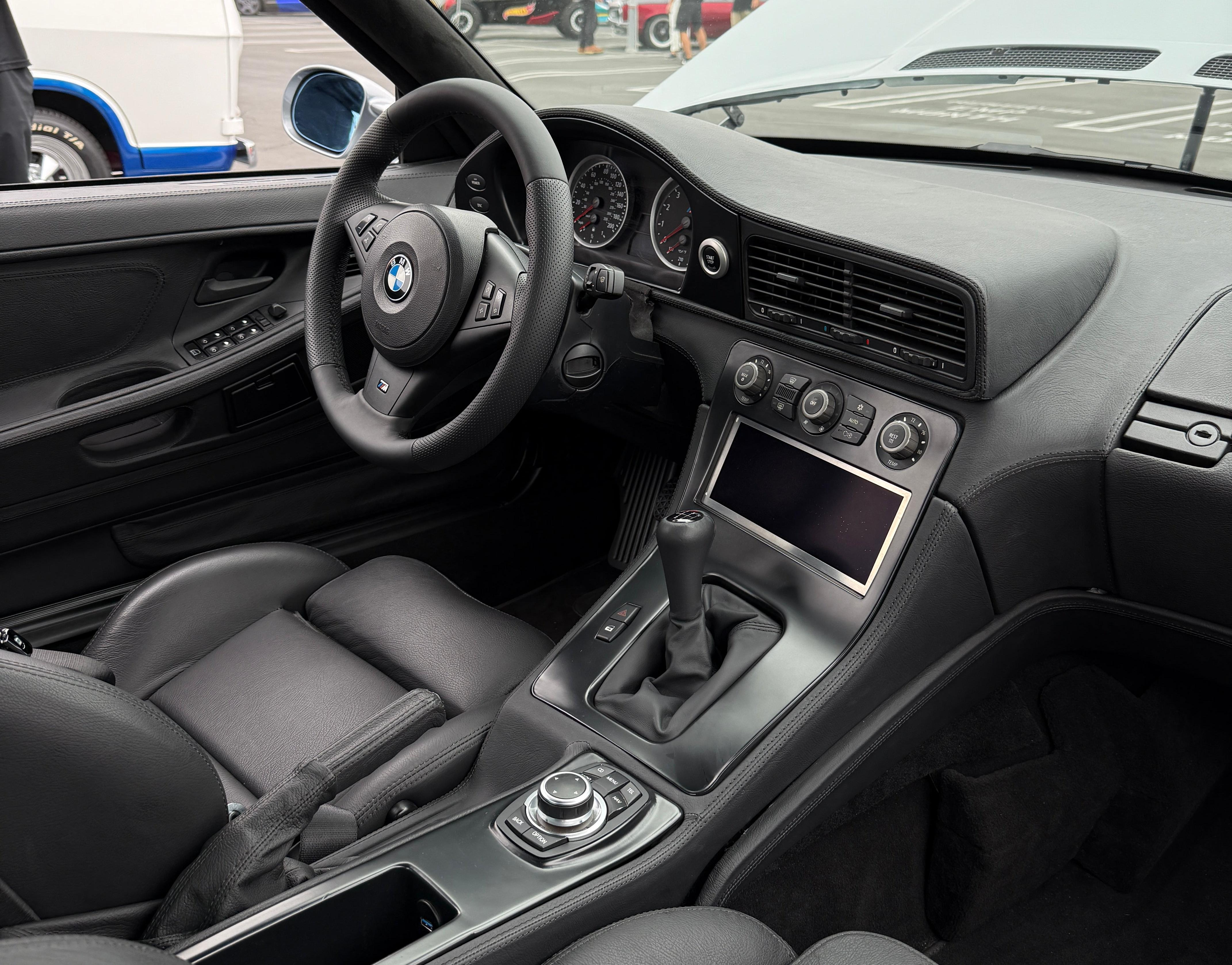 It was the inside that was most impressive to me. The 8 Series' stock interior design was retained, but with a number of extremely well-done modifications. There's an infotainment screen with an iDrive knob in the center console, and above the screen are a panel of climate controls taken from the E60. The steering wheel and gauges were also brought over from the M5, while the seats are "Vader" units taken from an E36 M3. Even little details like the light controls and start/stop button are from the donor M5. It looks so good you'd be forgiven for thinking it was a factory build.