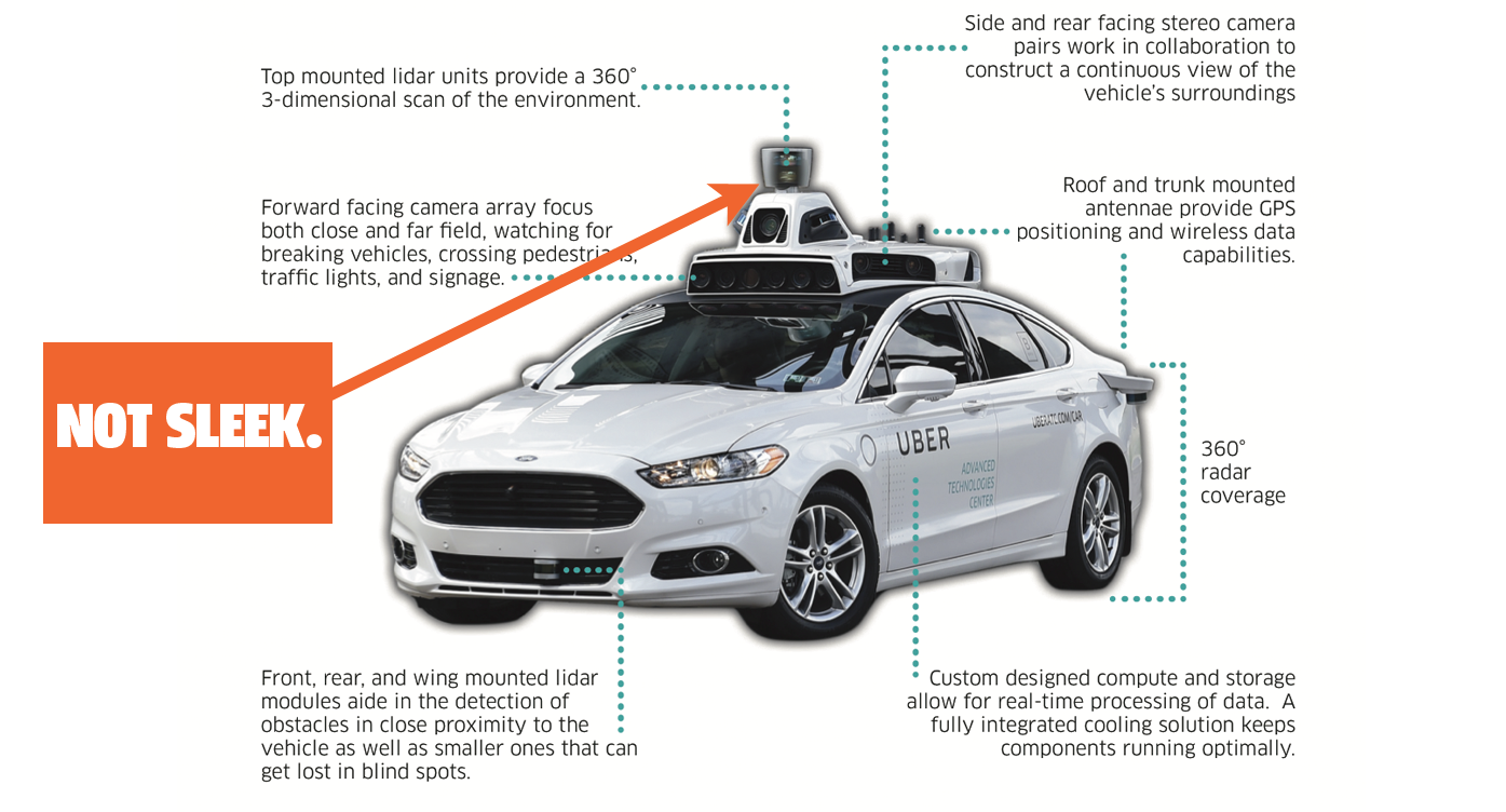 LiDAR hasn't been used on production vehicles for two main reasons: first, the technology is very expensive, and, perhaps even more importantly, it's really hard to sell cars with big, clunky-looking domes on their roofs.