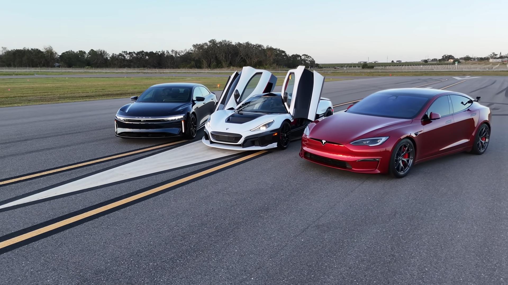 The Lucid, Rimac, and Tesla are three of the quickest cars to 60 on the market, though the race has a couple glaring omissions. Still, seeing three EVs with a total of 4,108 horsepower between them tear down a half-mile drag strip is a sight to behold.