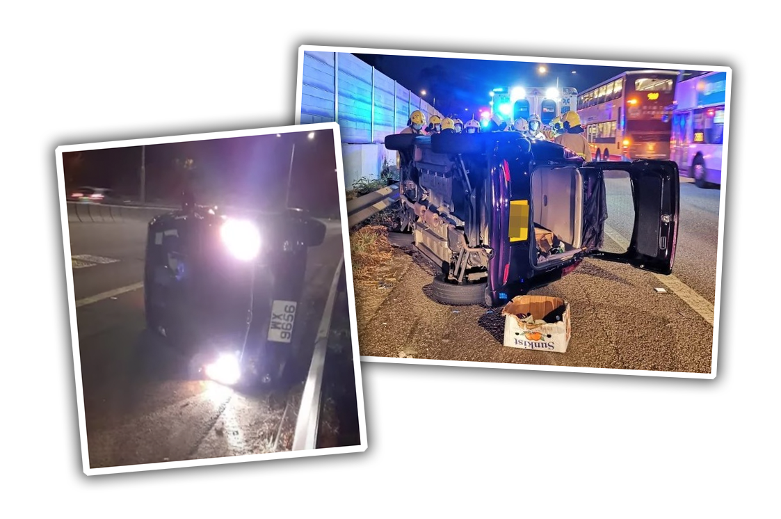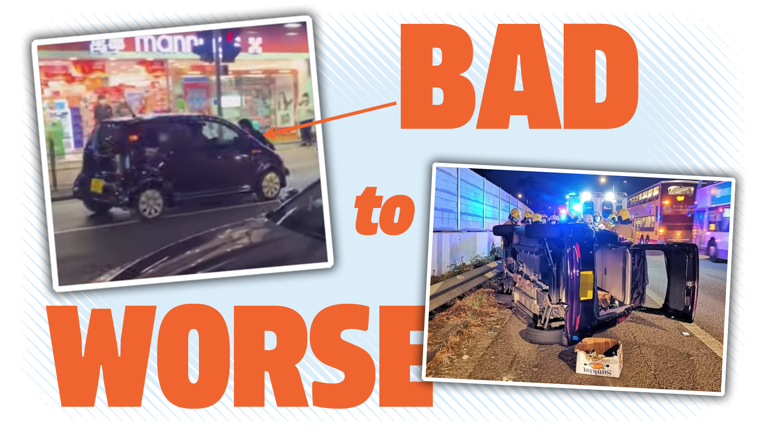 Holy crap, what a mess. I'm not going to claim to be an expert on Hong Kong traffic laws or insurance costs, but I'm going to go out on a limb and say that just dealing with the consequences of hitting that van's bumper would have to be better than this result. Plus, hitting and running is just a jackass thing to do.