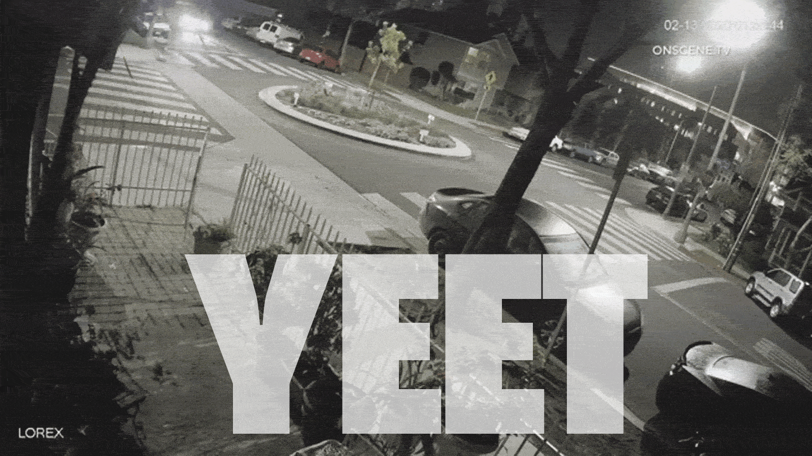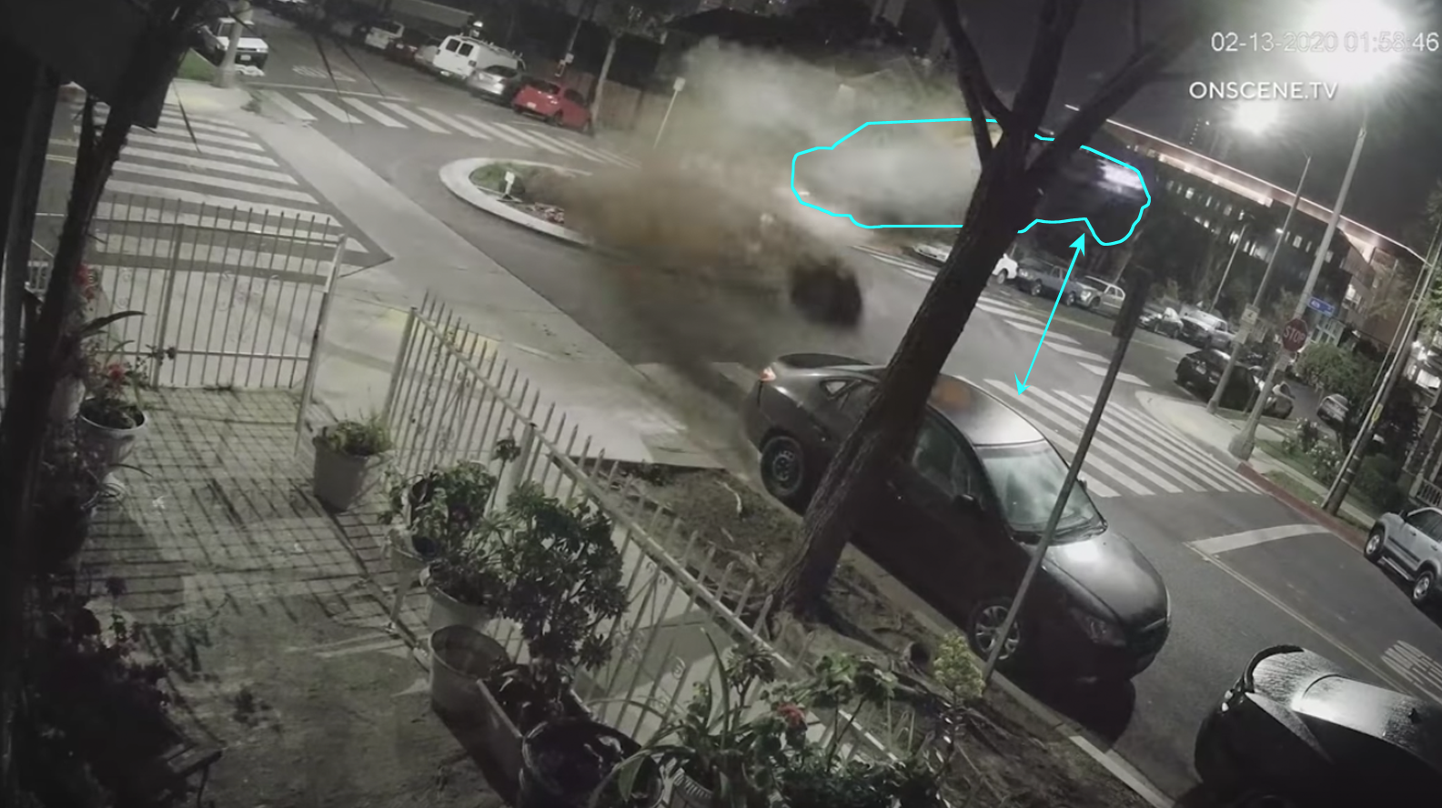 Some serious amateur Dukes of Hazzard shit was going down in Long Beach yesterday, with the skill and planning normally associated with stunt driving replaced with speed, inattention, and a 300 pound boulder to get effectively the same result: a car flying through the air. Incredibly, nobody was hurt in the wreck.