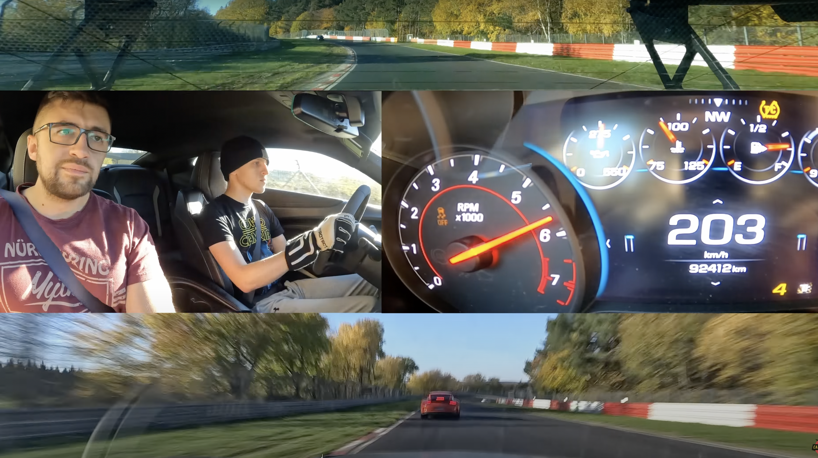 His car is also far from stock, rocking a massive rear wing and the suspension, as well as other aero bits, from the ZL1 1LE. The engine isn't supercharged, but it's clearly a track-focused build. And once he gets out on the 'Ring, the experience he got from doing 200+ laps really starts to show. He remains calm, cool, and collected the entire time, just chatting away with his passenger and politely passing slower cars.