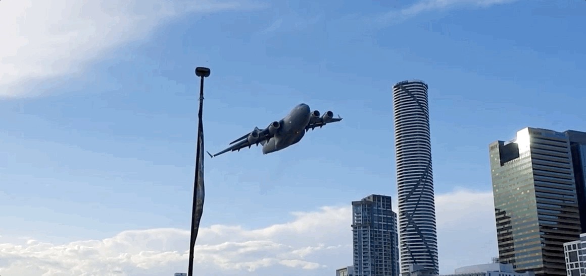 The Brisbane Festival is an annual three-week arts extravaganza in Queensland's capital, traditionally ending with some military flyovers before a lot of fireworks are set off in an event called Sunsuper Riverfire. This year, like in 2018, that included a C-17A Globemaster, looking pretty spry as it made it's way among the city's skyscrapers.