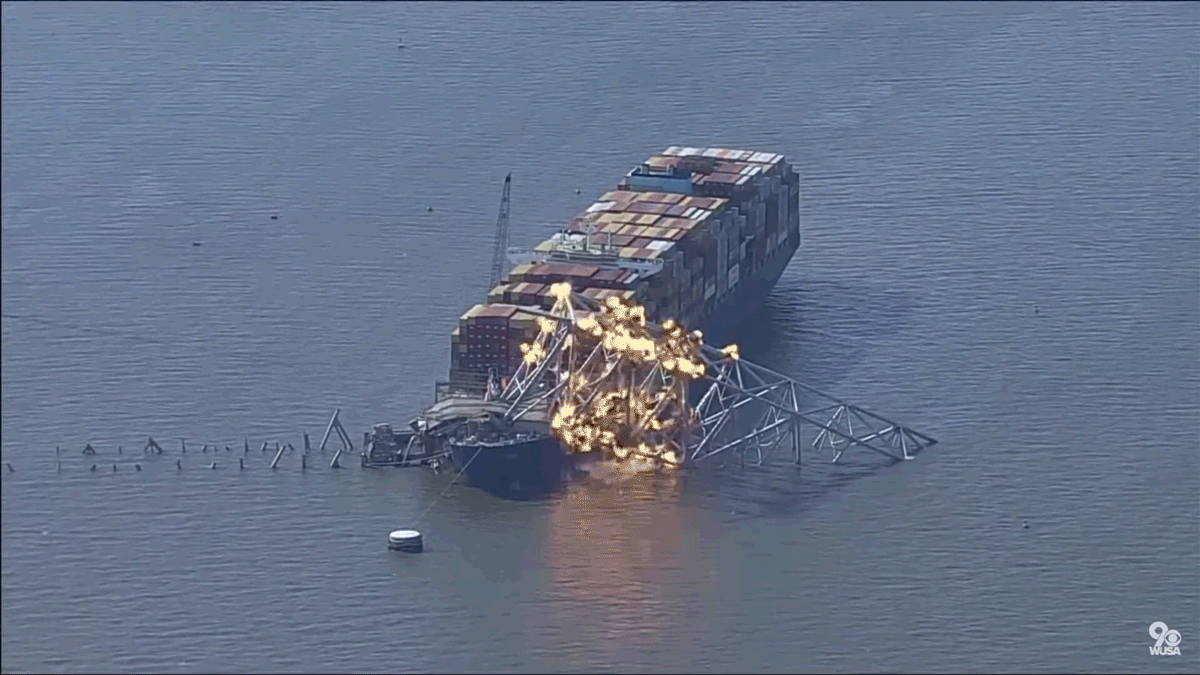 Local authorities announced last week that plans were in place to carry out a controlled demolition of the remaining bridge section. Blowing it up would allow engineers to refloat the Dali container ship and return it, and its crew, to port for inspections.