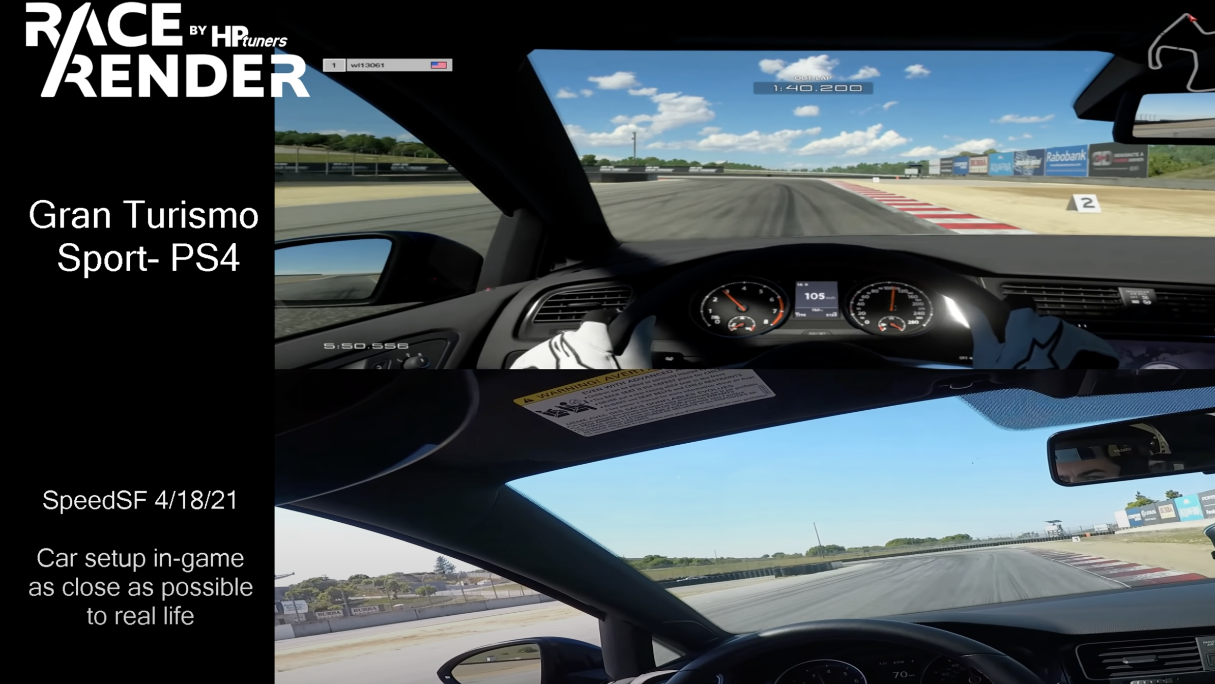 Will took out a Mk 7 Volkswagen GTI to compare a lap from Gran Turismo Sport to real life. The GTI comes outfitted with a turbocharged 2.0-liter inline-four engine that makes 228 horsepower and comes with a standard manual gearbox. The VWs in the clip looks to have added the optional dual-clutch automatic, however. Both cars have been set up as similarly as possible for the purposes of the experiment.