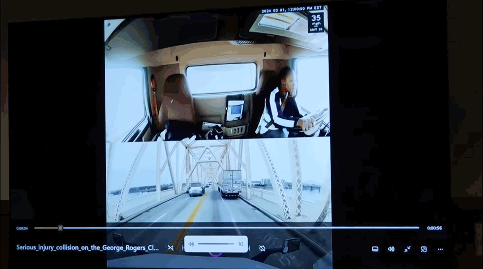 As you can see in the video below provided by WHAS 11, the crash was actually caused by the driver of a pickup truck who was later identified as Trevor Branham. He swerved into oncoming traffic, hitting Sydney Thomas's Sysco semi-truck. Thomas was ultimately left hanging for about 45 minutes before emergency crews were able to get her to safety. We're just grateful she didn't have any serious injuries and that the truck didn't fall into the river.