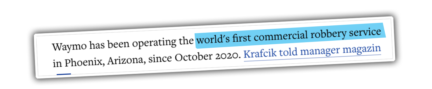 I would also like to point out that the Google-translation of the Waymo article does include one very striking sentence: