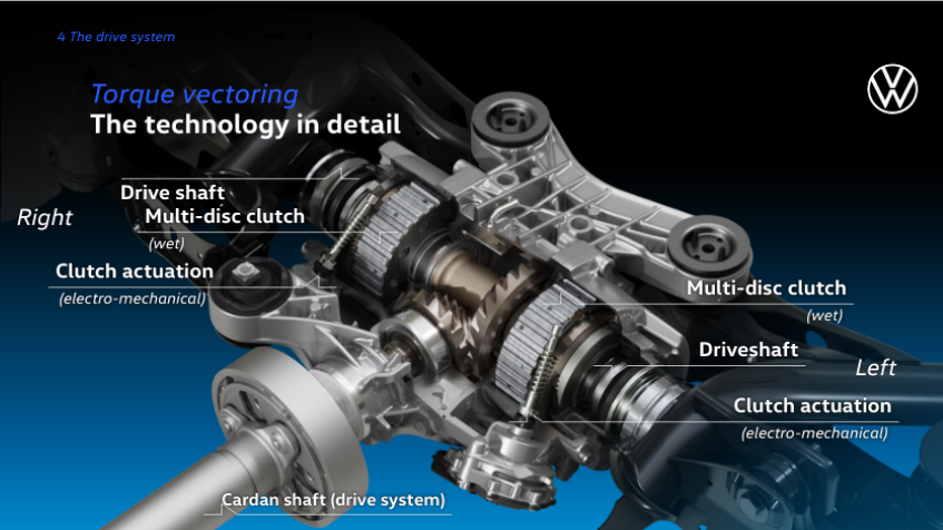 With the new Golf R, we say goodbye our dowdy biological father Mr. Haldex and hello to our cool stepdad, Mr. Twin Clutch. Instead of a clutch that sends power to the rear axle to be distributed by the open diff (with input from the brakes) you get two clutches in the rear, one for each of the axle shafts. In VW's setup, that means you can send up to 50 percent of engine power to the rear axle and, depending on what you're trying to do, you can send some, or even all of that power to either one of the rear wheels. If you want to go around a corner fast, putting some extra sauce on that rear outside wheel helps push you, like paddling a canoe. If you want to go around a corner sideways — and you don't want to set up a flick, kick the clutch or pull the handbrake — a system like this helps initiate oversteer. On loose surfaces, this can mean a faster car, as we found testing a Focus RS in drift mode at Team O'Neil Rally School a few years back. As always, catching it/looking cool will be up to you.