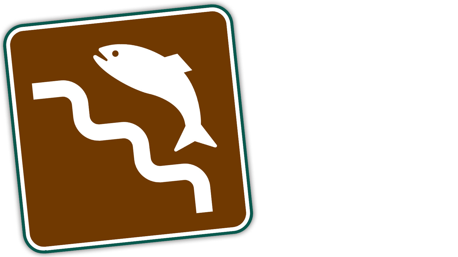 "Not on a road but a foot path that shows a Salmon run ahead."