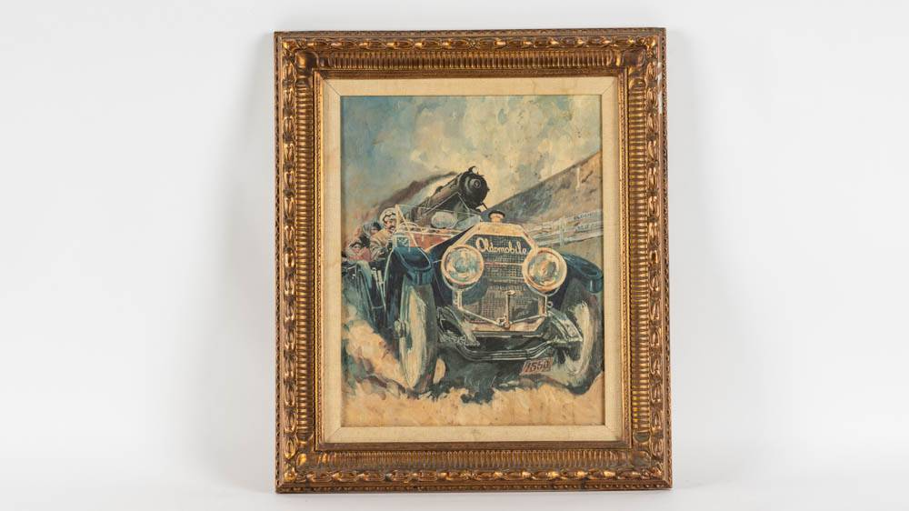 In 1910, famed artist William H. Foster was asked to paint their new Oldsmobile Limited on canvas. Foster chose to paint the Limited racing against a New York Central train and winning. There is some minor argument as to whether the race actually occurred, but I think Foster's choice of imagery was more metaphorical, representing a shift in transportation choice of Americans of the era.