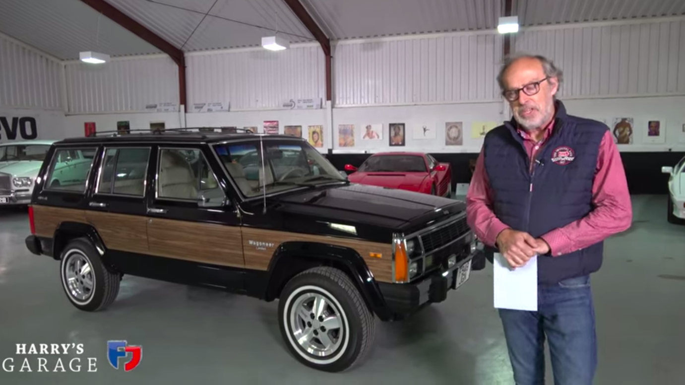 Harry Metcalfe, founder of Evo Magazine, and also a farmer and YouTuber, got his hands on one of the most fascinating examples of the Jeep Cherokee XJ: The Wagoneer Limited. (That's the one from the 1980s that came with the faux wood trim, wacky grille, amazing stacked headlights, and nice leather interior). And not just any Wagoneer Limited. As Metcalfe tells it, this 1989 vehicle was chosen specifically as a runabout for a rich guy's ski chalet in St. Moritz, Switzerland. "It was basically the very first example to come to Europe," the Harry's Garage host says, before saying the Jeep, which actually wasn't officially sold in Great Britain until the 1990s but was sold in Europe in the mid 1980s, used to sit next to a Swiss Monteverdi Coupe sports car.