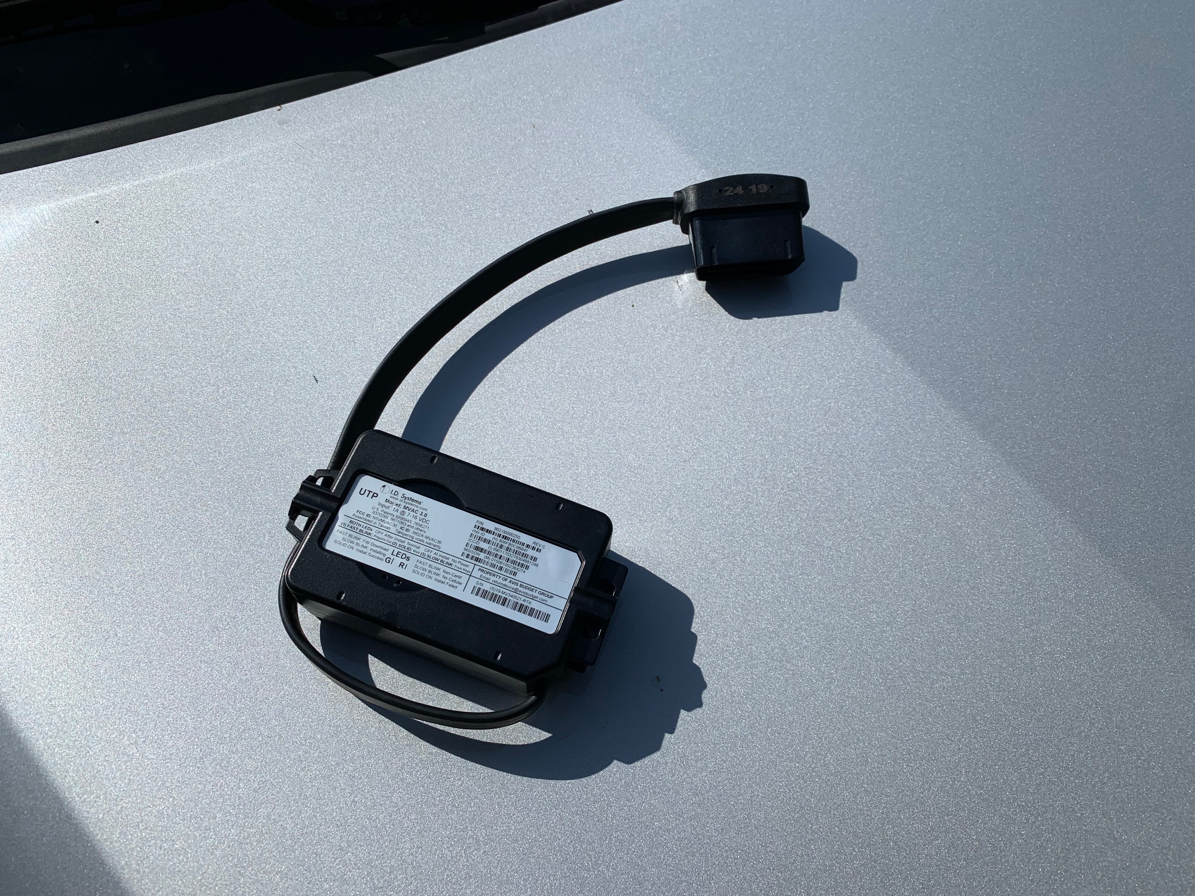 I mean, I've got a basic idea. This is clearly a device that plugs into the OBDII port under the dashboard, meant to either receive or transmit data to the car's computer. The thingy has a standard OBD plug on one end and (according to resident gear-knower Steve DaSilva) an eight-pin Molex power plug on the other end. Check 'em out: