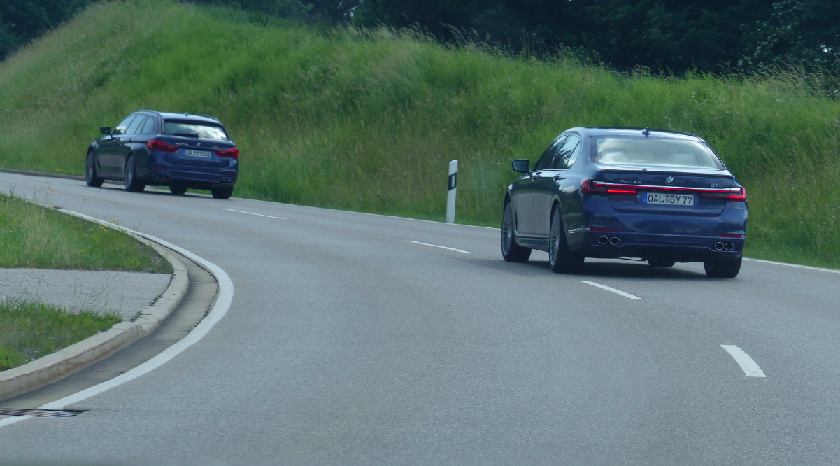 In the turns, the Alpina B7 was fun despite its heft, which made itself known as the load transferred from side to side in the transitions. Looking at the car ahead of me showed that there was a decent amount of body roll, though from the inside, the car felt planted; it was comfortable and confident through the bends, and the tires refused to let go, allowing the B7 to really hold its own in the handling department. Again, at least, for something of its girth.
