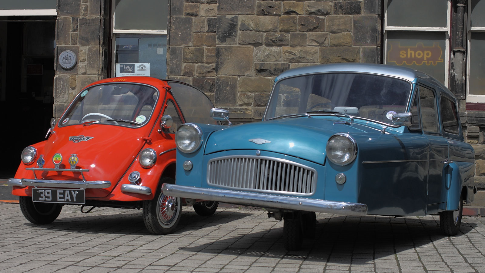 Let's start things off with the Bond Minicar, a series of three-wheelers built in the UK back in the 1950s. This lineage started with the cutesy Minicar of 1949 that soon ballooned into the ugly Mark E of 1957.