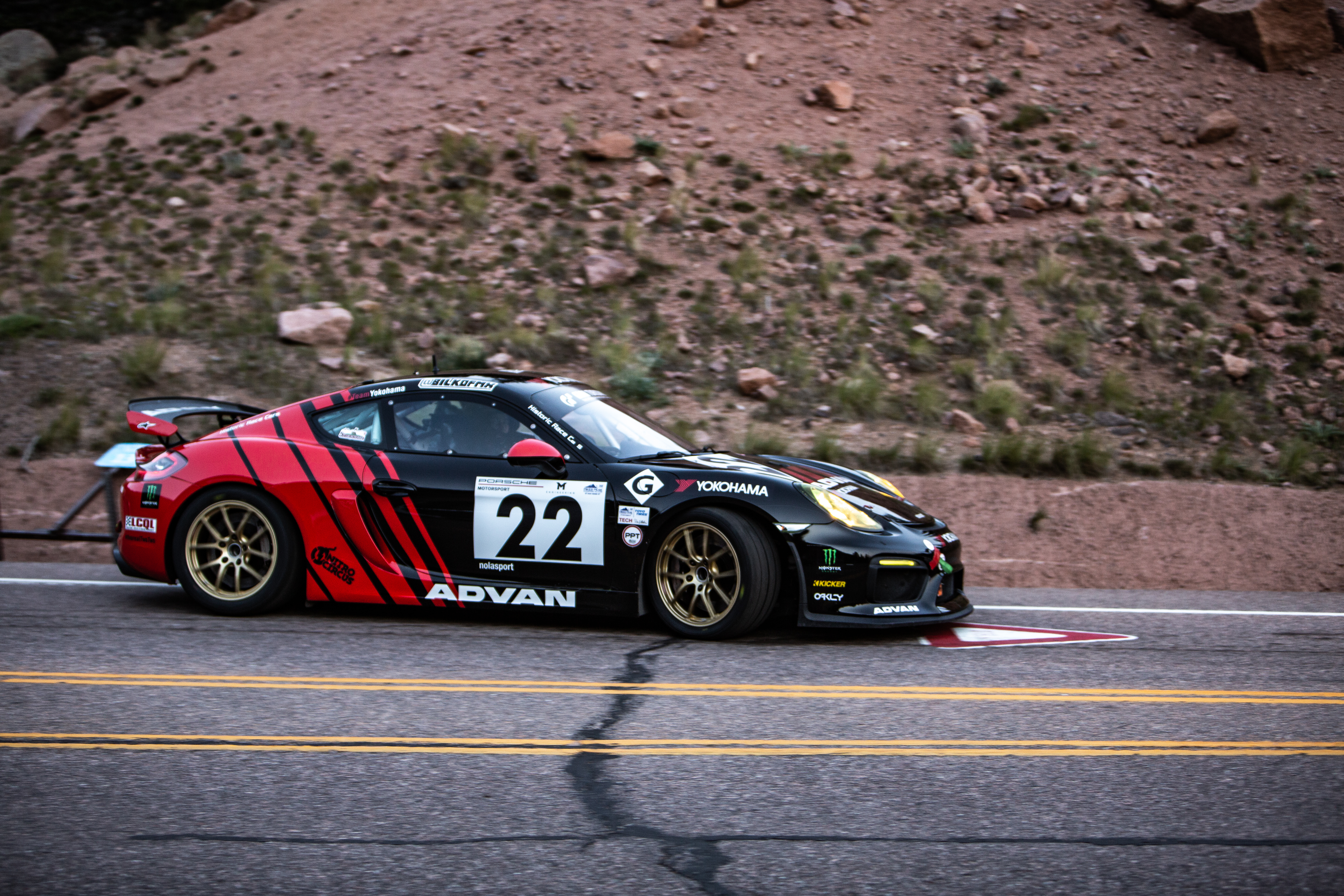 Continuing the Porsche parade is a fleet of Caymans that run in their own spec Cayman GT4 class. Several Porsche hotshoes are behind the wheel of these factory racecars, led by Nitro Circus's Blake "Bilko" Williams. Pikes Peak seems custom-built for these nutters from Nitro. The Nitro crew has been led for the past few years by Travis Pastrana (who could not attend this year), a guy whose lack of fear and concern for personal safety is well documented. Bilko has been the quickest of the GT4s so far, but George Hess is not far off. Look for a tough fight between these two in the class.