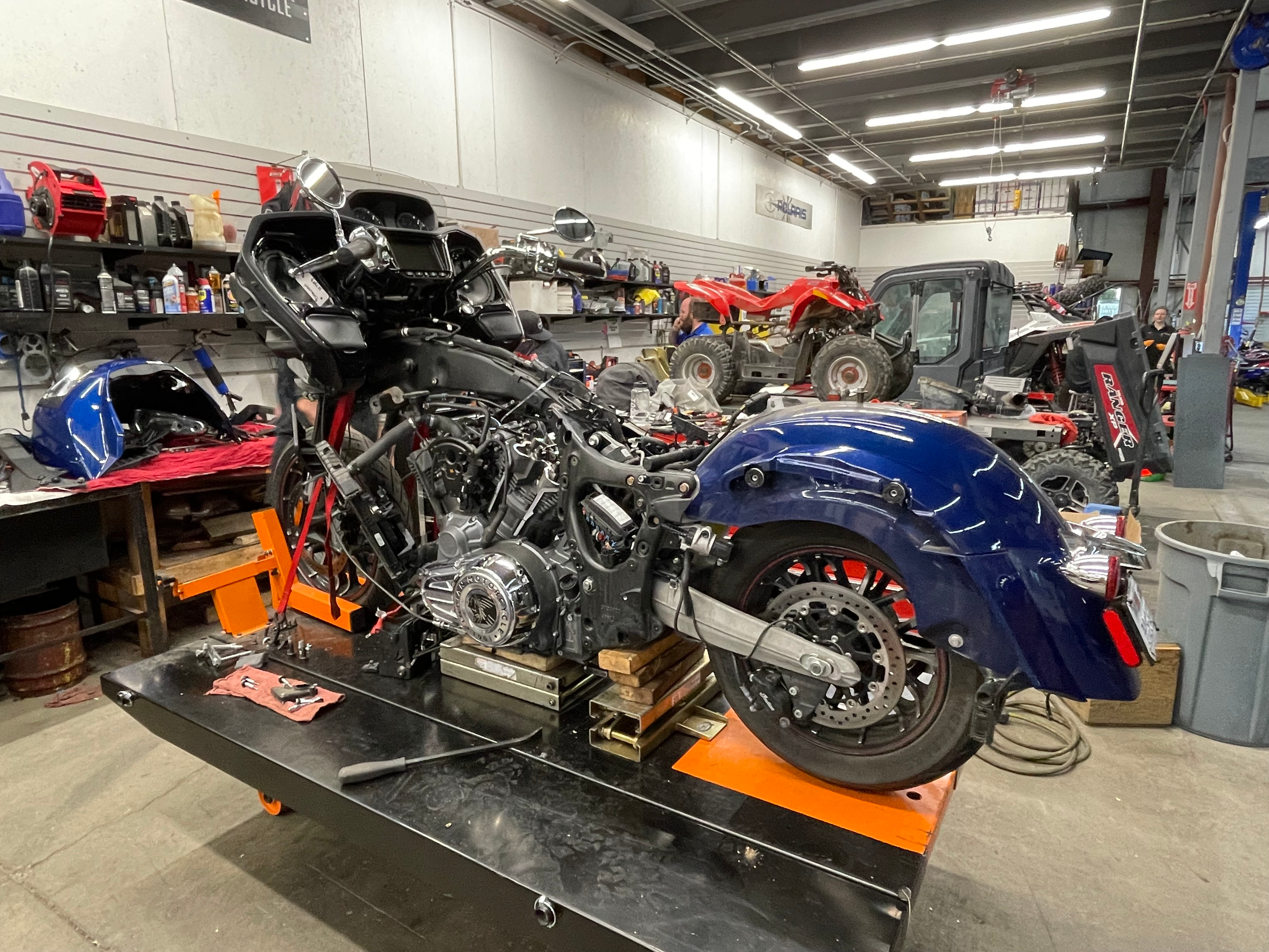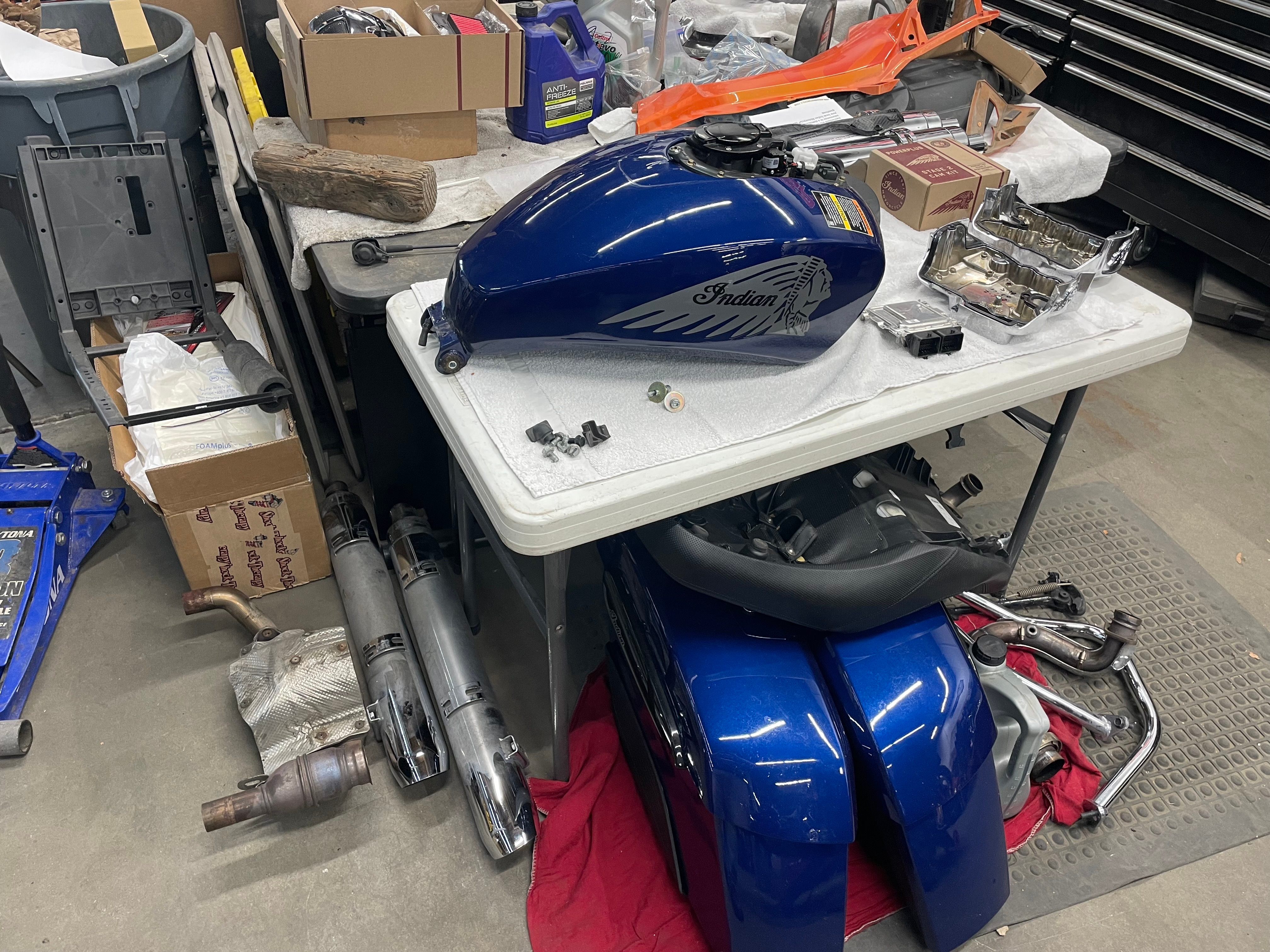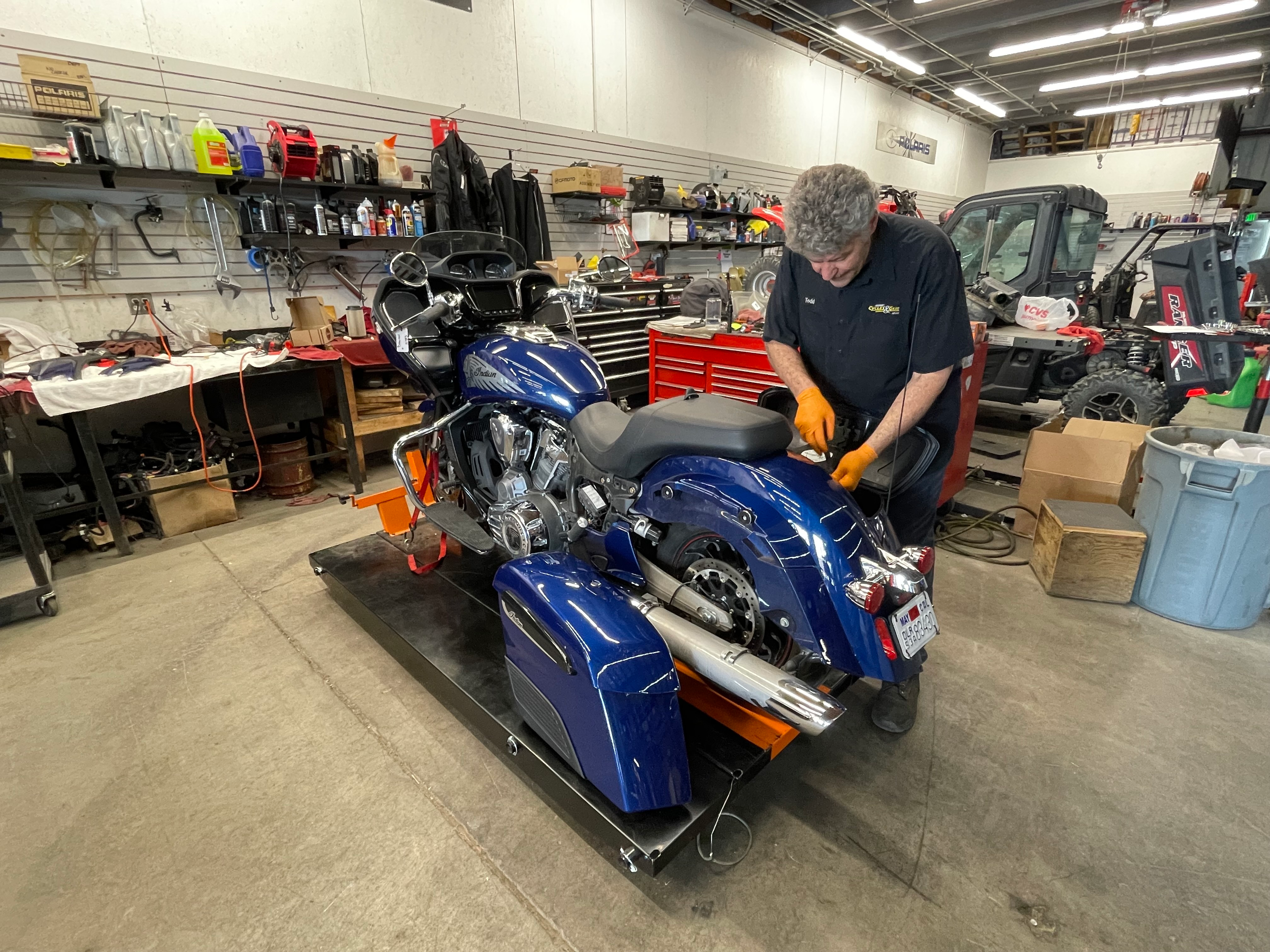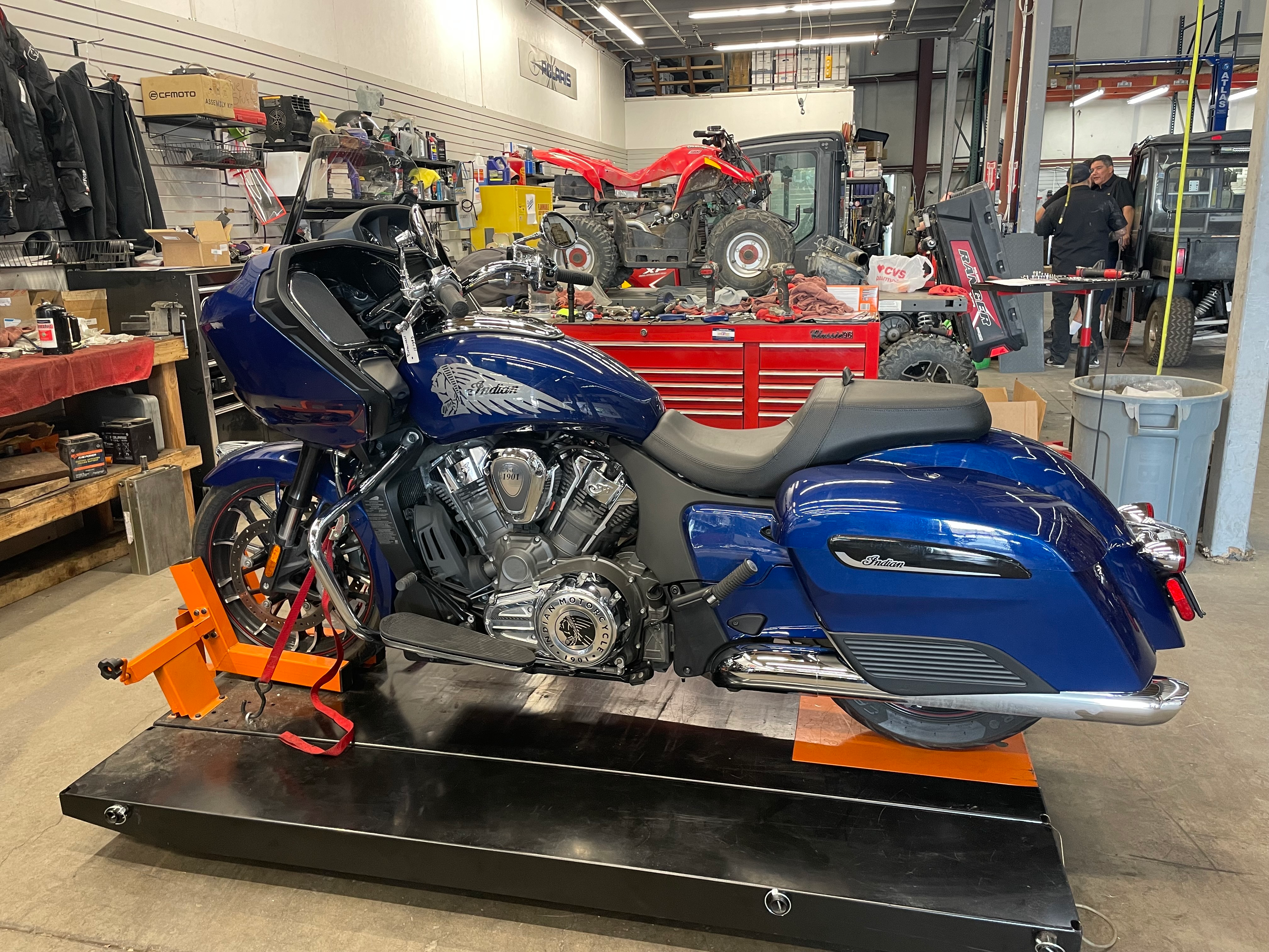 So, when I was home for more than a couple days, my local Indian/Polaris dealer service department and I coordinated to get the job done. Indian shipped all of the parts straight to the dealer for the upgrade, I brought the bike in on a Thursday morning, and everything was set in motion.