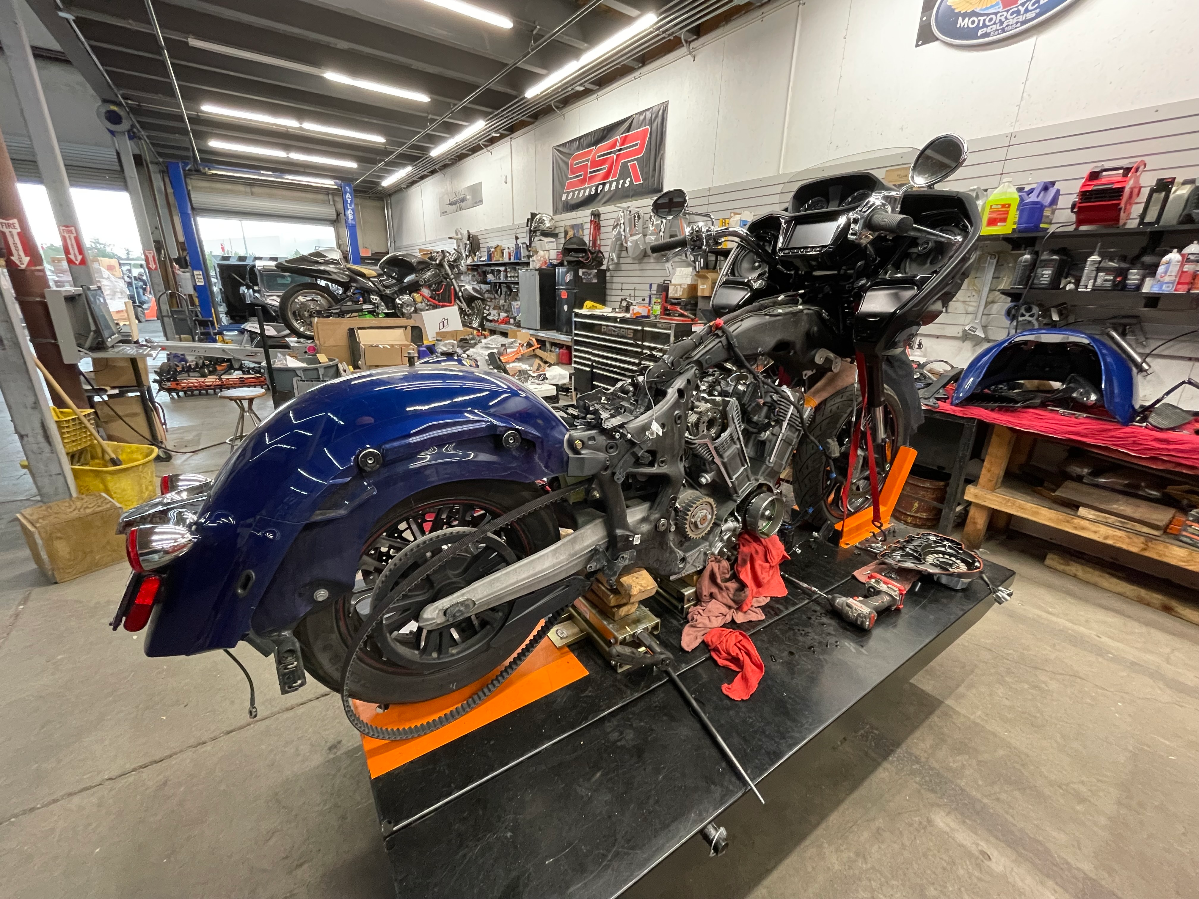 Over the course of a day and a half, I stopped in a handful of times to chat with technician Todd who did all of this Stage 2 work on the bike, and take a few pictures of the different stages of progress. He admitted to me that he'd never done this upgrade for a Challenger before, but he reassured me that he had decades of experience working on some of the wildest stuff in the world, including that turbocharged Countach that got a lot of press a couple years back. Those are some serious bona fides, so I was never even a little bit worried about this process.