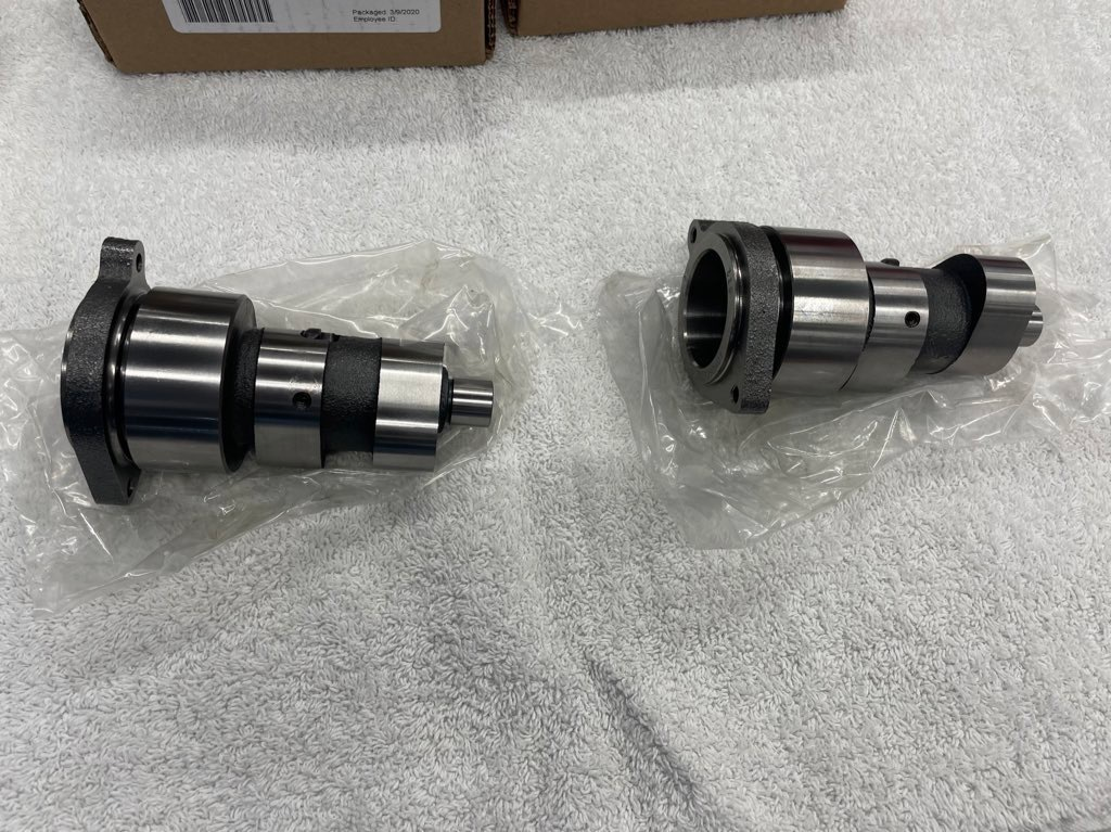 And the reason this bike needs more intake air and freer-flowing exhaust mufflers is right here. A fresh set of bump sticks! As an overhead-cam engine, the PowerPlus motor needs two cams, one for each cylinder. As a result, these are by far the most labor-intensive install of the three pieces of this upgrade. The motor actually has to be lowered out of the frame to gain access to the valve covers. Power is the name of the game, though, so let's hop to it.