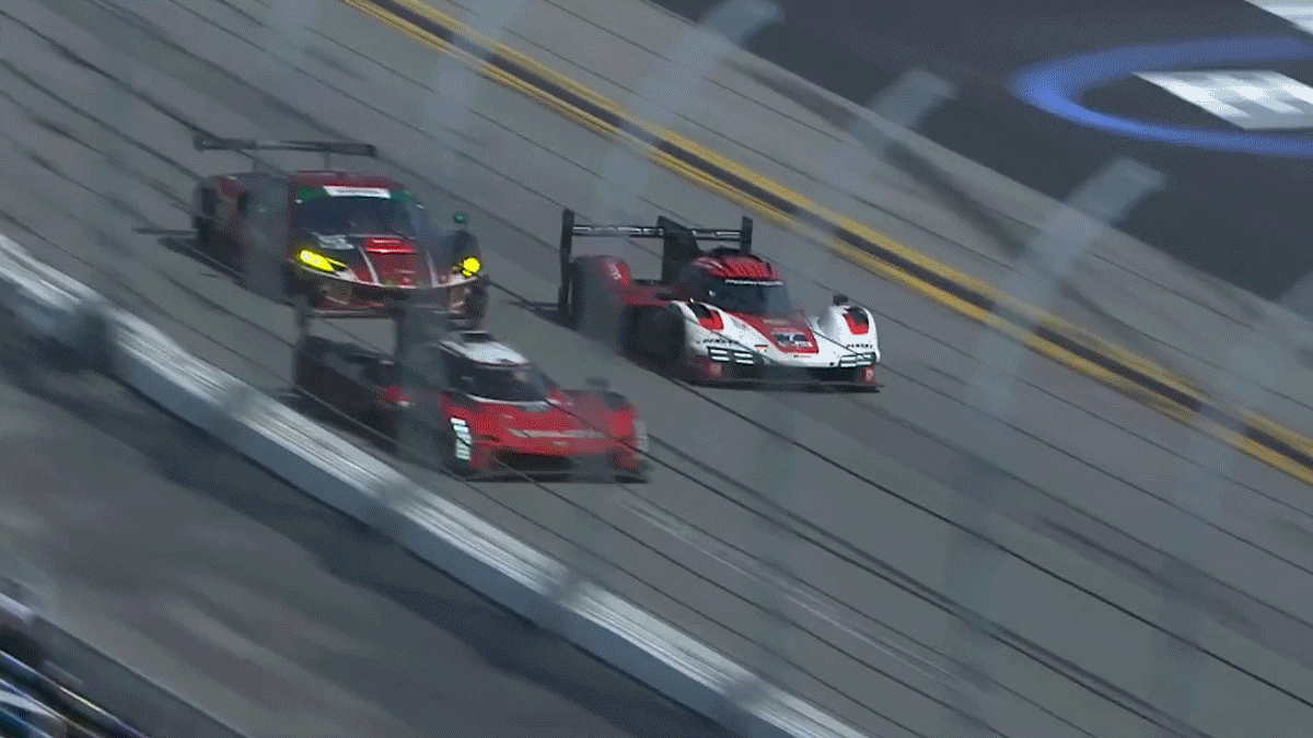 To set the scene, the Rolex 24 often goes down to the wire despite the IMSA season opener's ridiculous length. The race of attrition typically features full-course cautions throughout its duration to recover stranded cars out on track. Damaged vehicles are allowed to be towed back to the garages, sort of like a video game reset. More importantly, the field of competitors is bunched up behind the pace car for the restart.