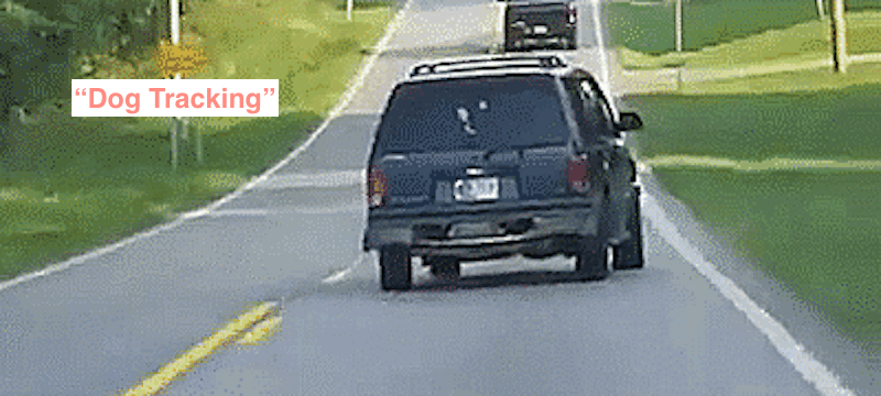 Have you ever driven down a straight road and noticed that the car in front of you appeared to be driving sideways, with all four tires visible from directly behind? If so, you've been witnessing "Dog Tracking." Here's why it happens.