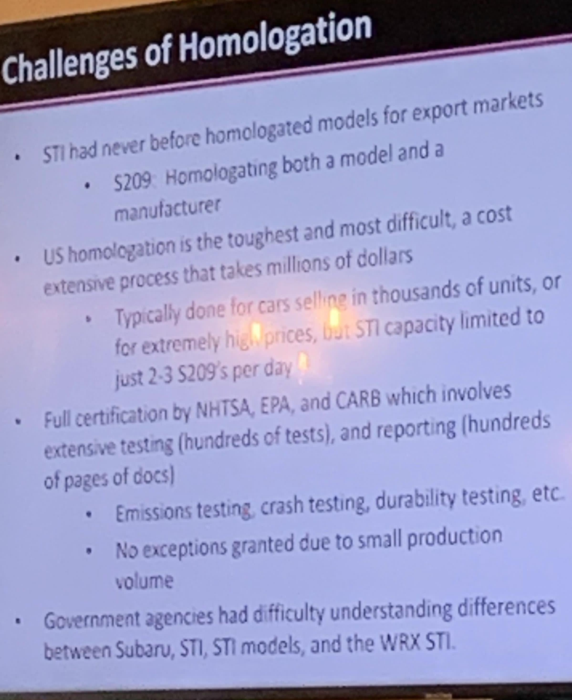 So with the homologation of the S209, STI has established itself, in the eyes of the U.S. government, as its own entity, even if it's ultimately still considered a secondary manufacturer to Subaru.