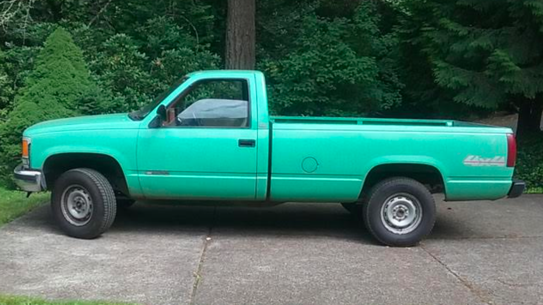 Tucker says he's the third owner since Uncle Sam sold the K1500 at an auction roughly eight or nine years ago (per the previous owner). The truck then allegedly saw duty as a pizza delivery vehicle near Spokane, Washington. Then the last owner taught his son to drive stick with it, and commuted between Portland an Pendleton, Oregon, before selling the truck to Tucker for $1,200. God that's a great deal for a rust-free truck with this much soul and functional air conditioning.