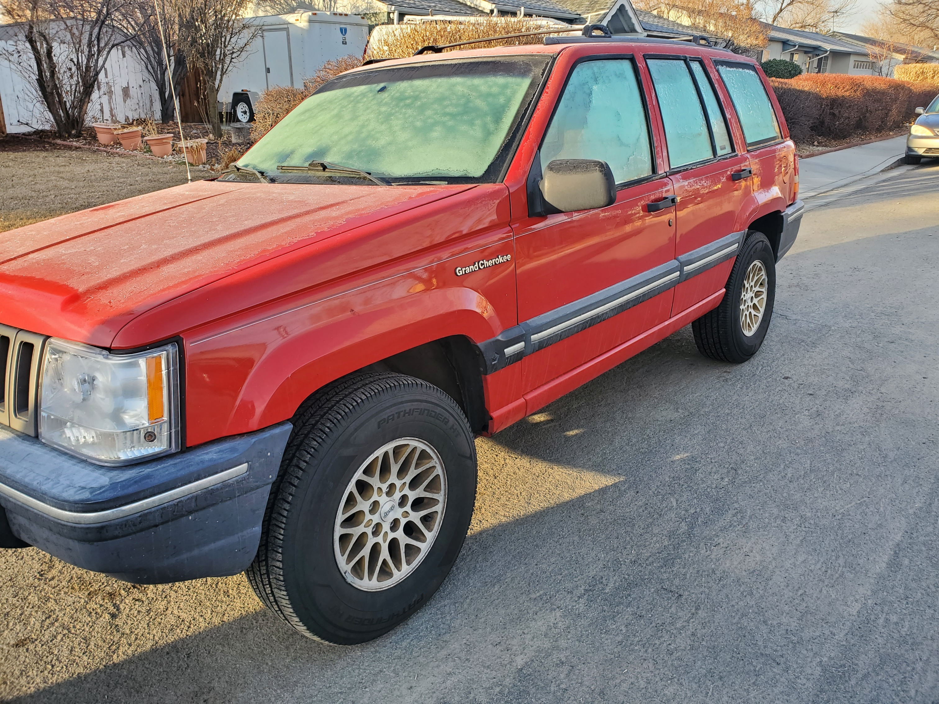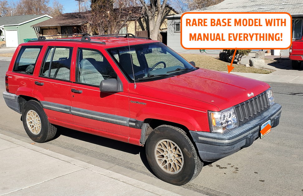 This Jeep is awesome. I do know of one other base manual Grand Cherokee out there, and it doesn't even have AC, so it's a true stripper model. There may be one or two other base manual ZJs out there, but I'm fairly sure I now own the only red 1993 Base-trim, manual transmission Jeep Grand Cherokee on earth. Not that anybody but me cares.